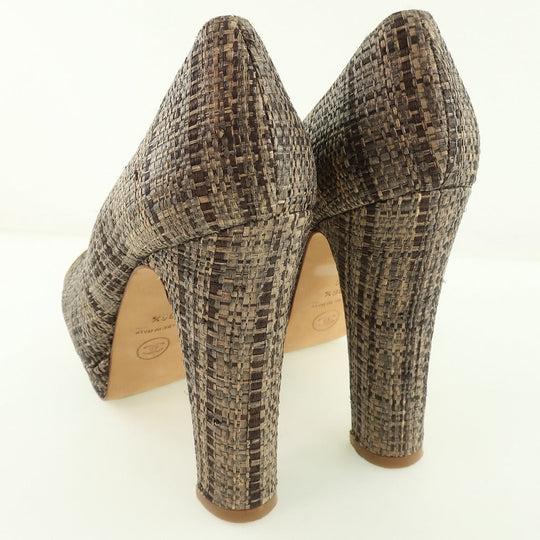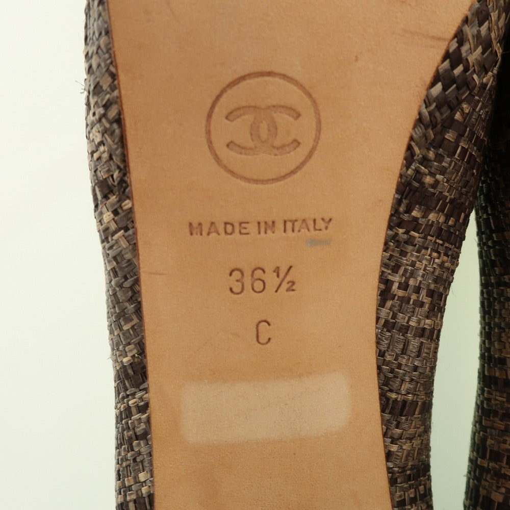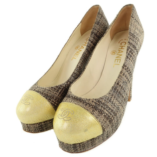 CHANEL pumps Patent Leather, Jute Two-tone (Brown) High heels 36 1/2