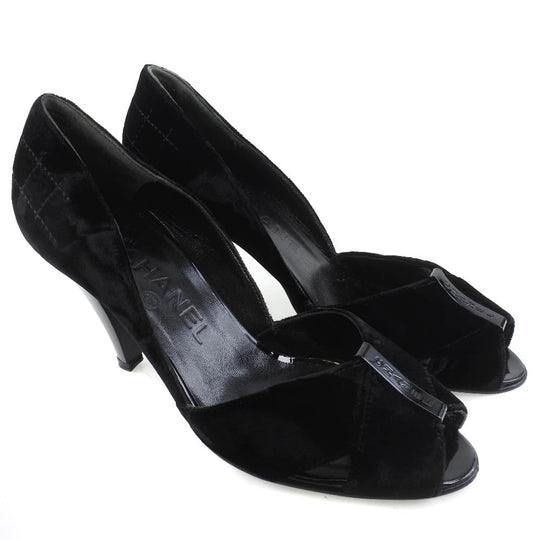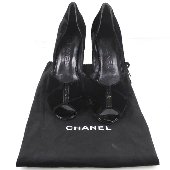 CHANEL pumps Velvet, Leather black Women 36 1/2 Used Authentic