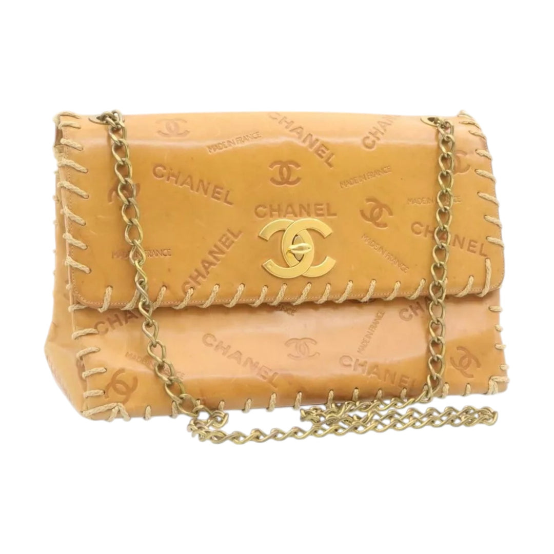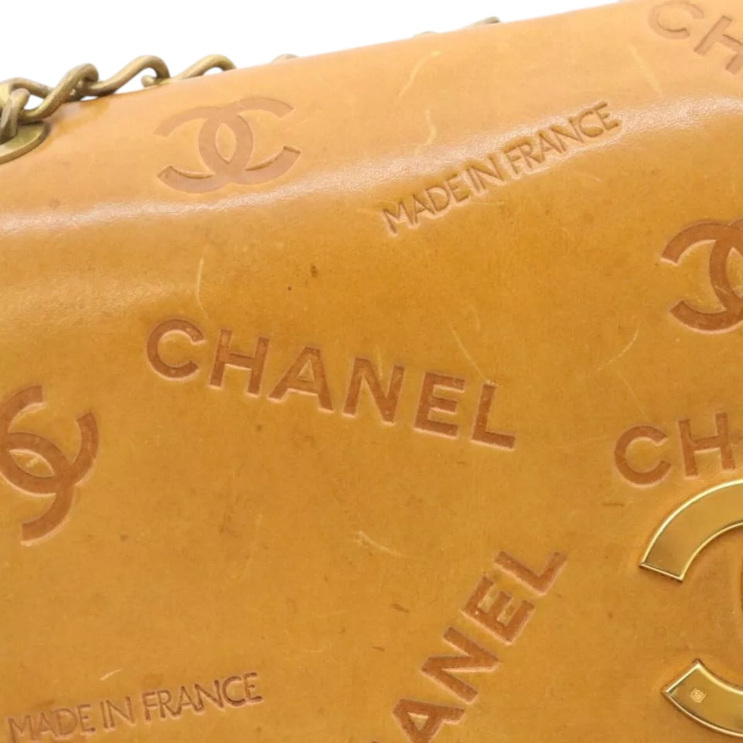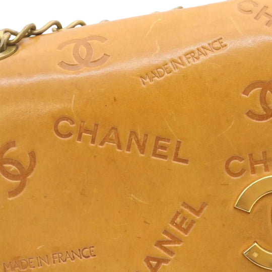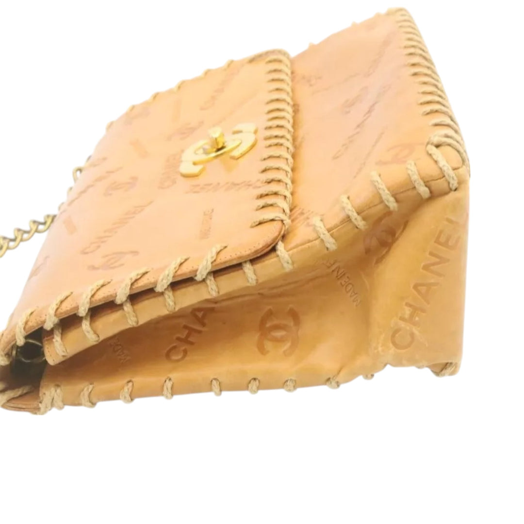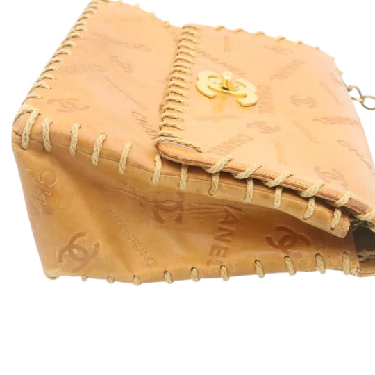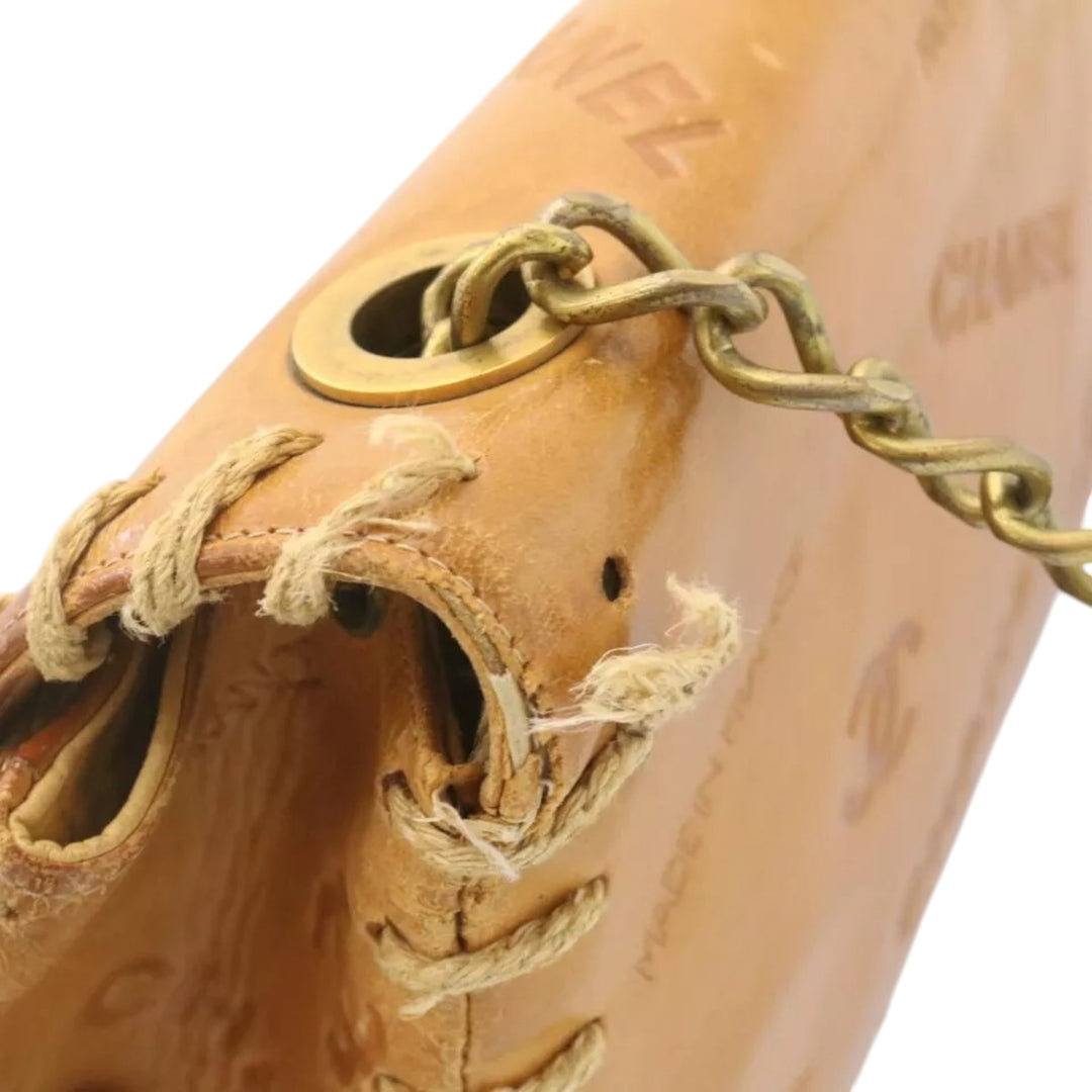 Chanel Raffia Chain Flap Shoulder Bag Beige Leather