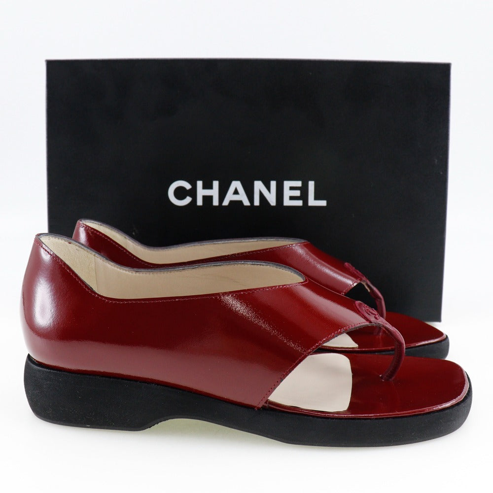 CHANEL Sandals A10780 Patent leather wine-red Tong Women 36 Used Authentic