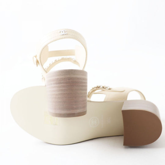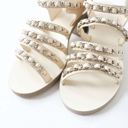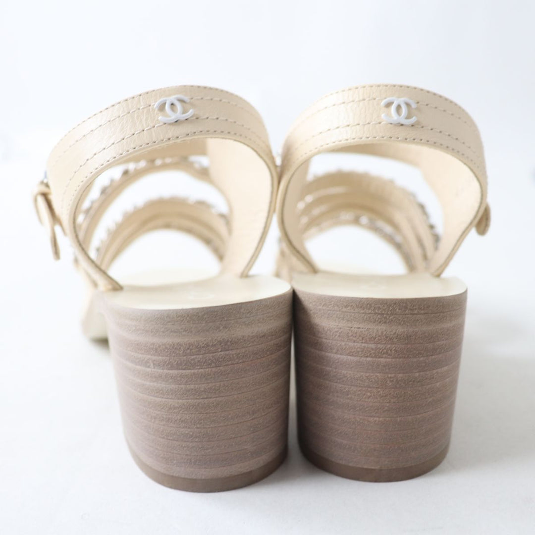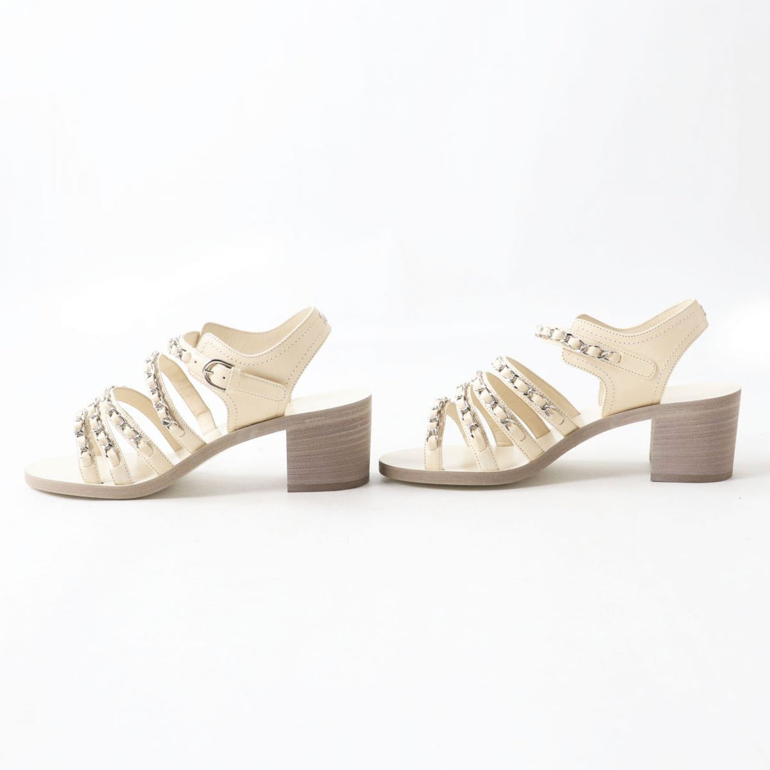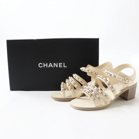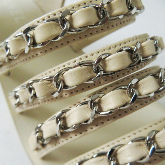 CHANEL Sandals Calf leather beige SilverMetal 36