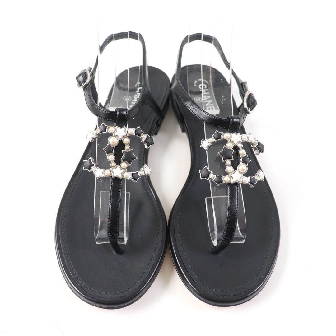 CHANEL Sandals G24355 Main: Leather black Women 34 1/2 C Used Authentic