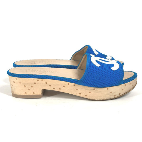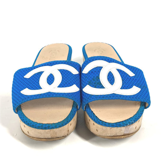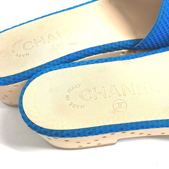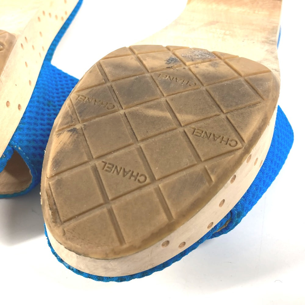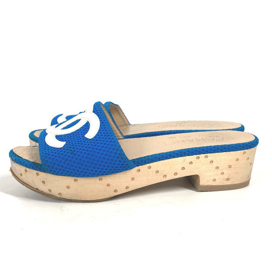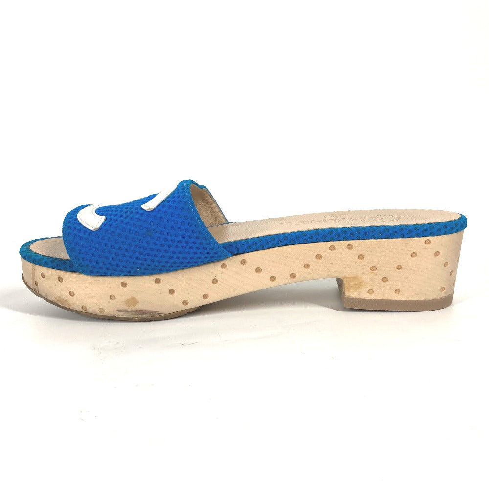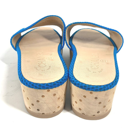 CHANEL Sandals G27145 Wood blue CC COCO Mark Women 37 Used Authentic