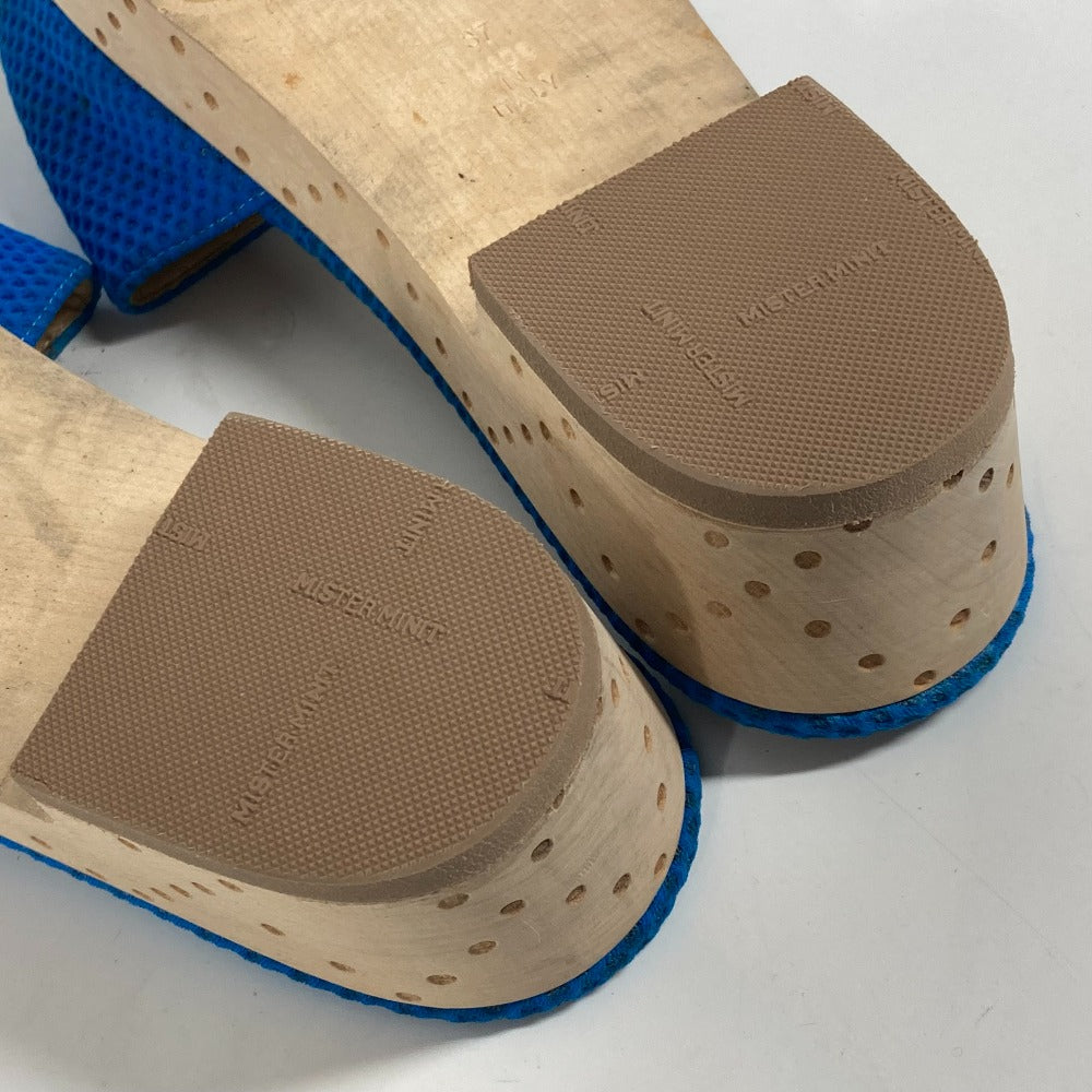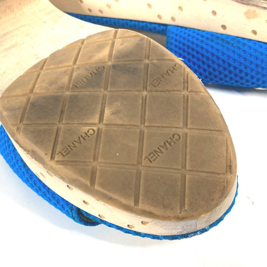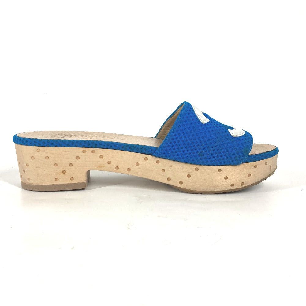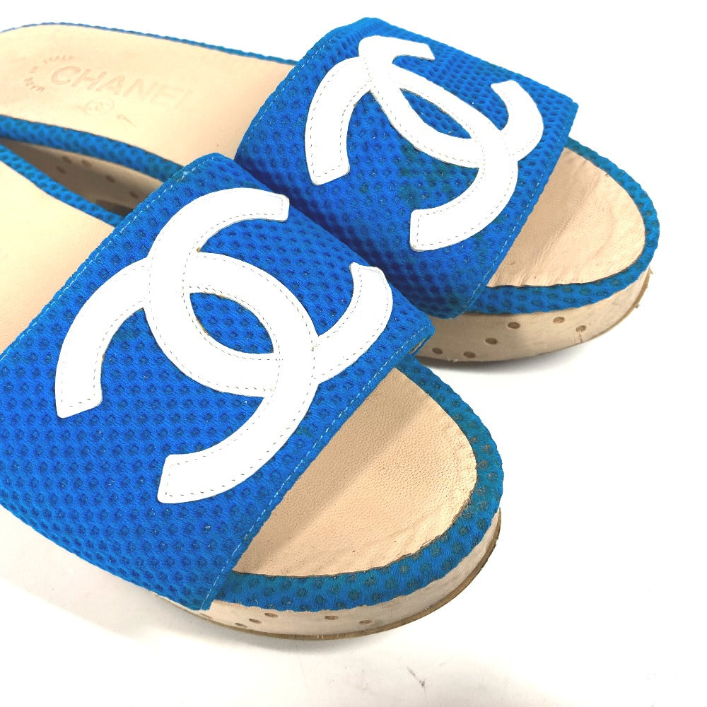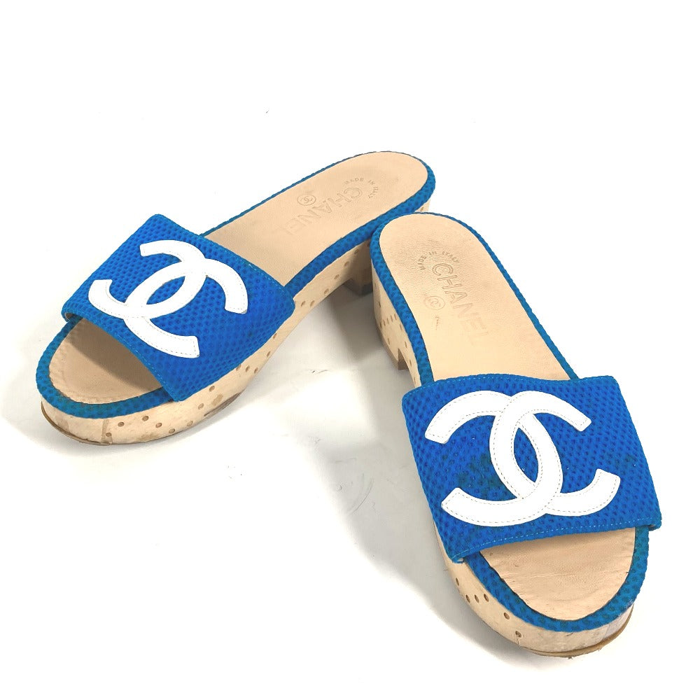 CHANEL Sandals G27145 Wood blue CC COCO Mark Women 37 Used Authentic