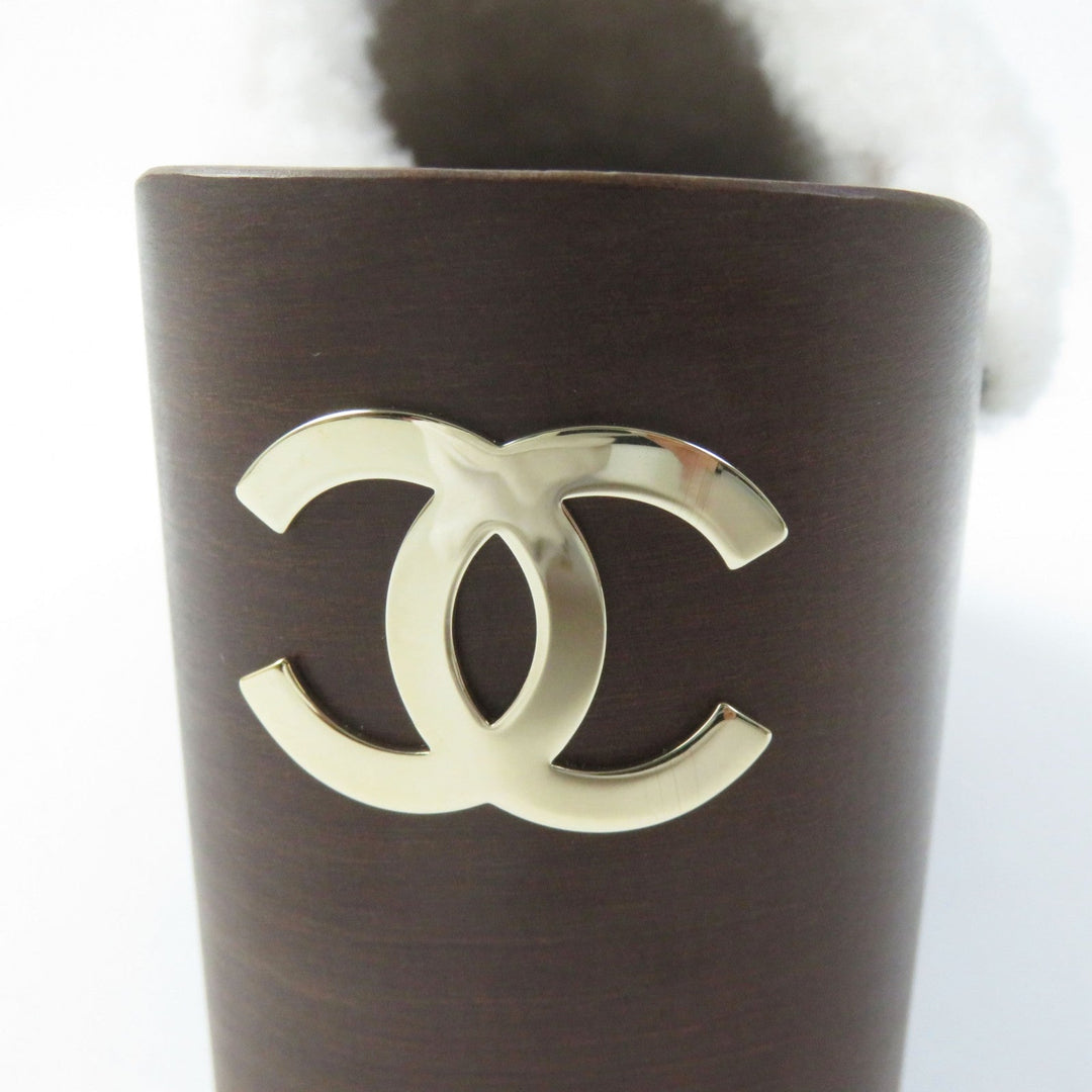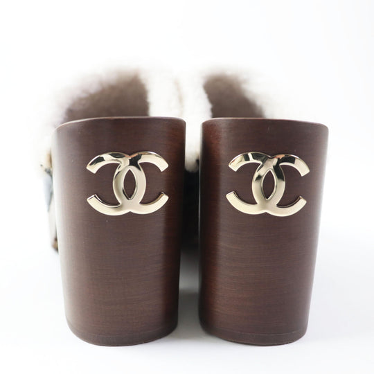 CHANEL Sandals G35368 Sheepskin Wood type Black brown Women 36 Used Authentic
