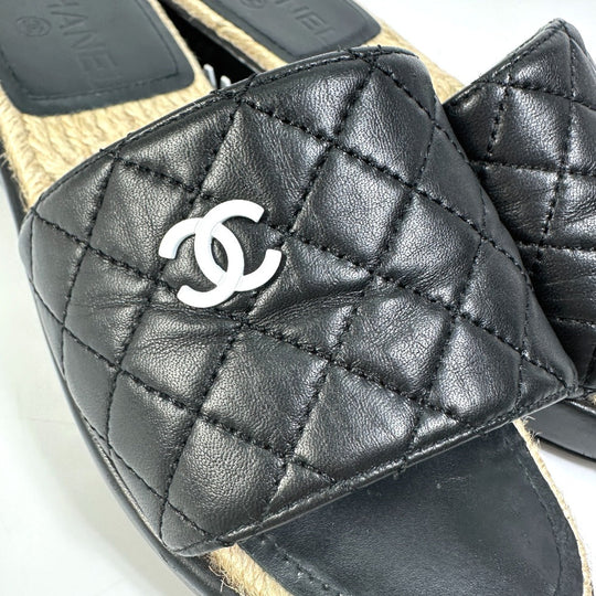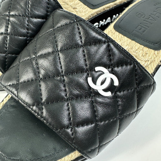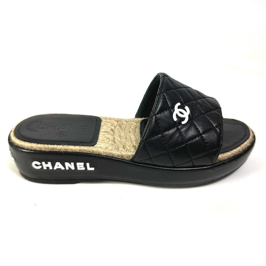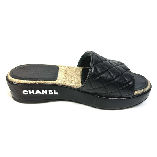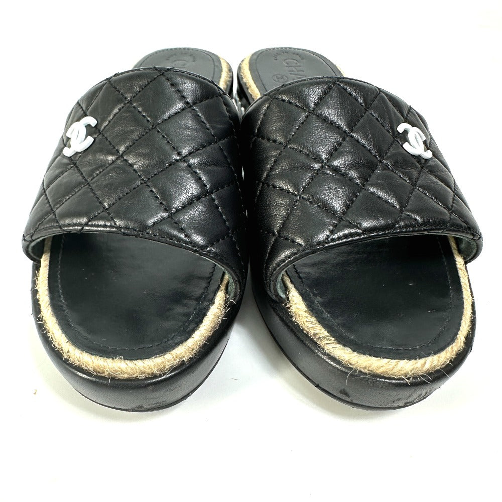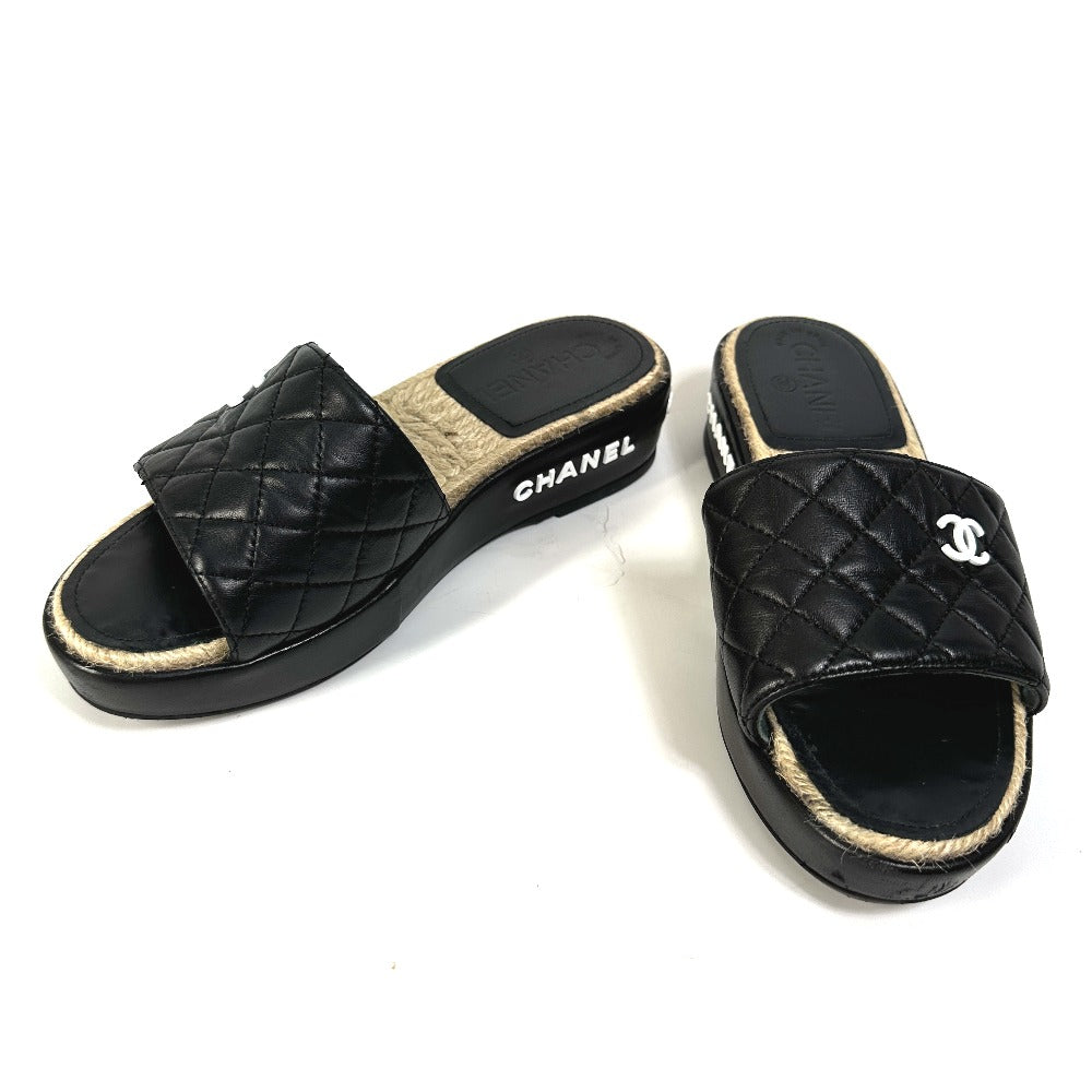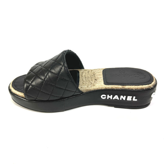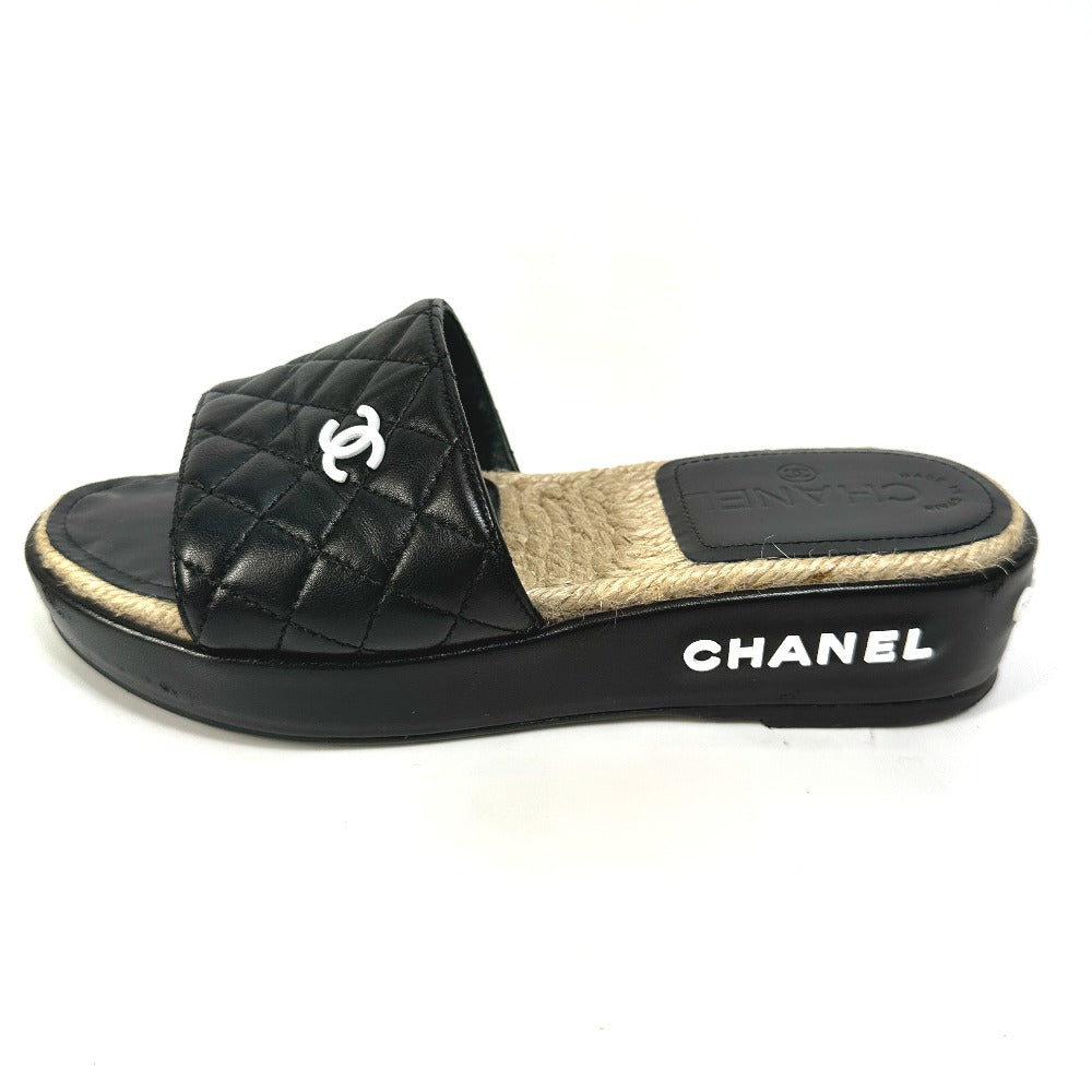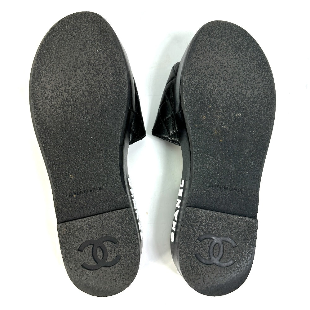 CHANEL Sandals G35925 lambskin black COCO Mark CC Matrasse quilting 36C