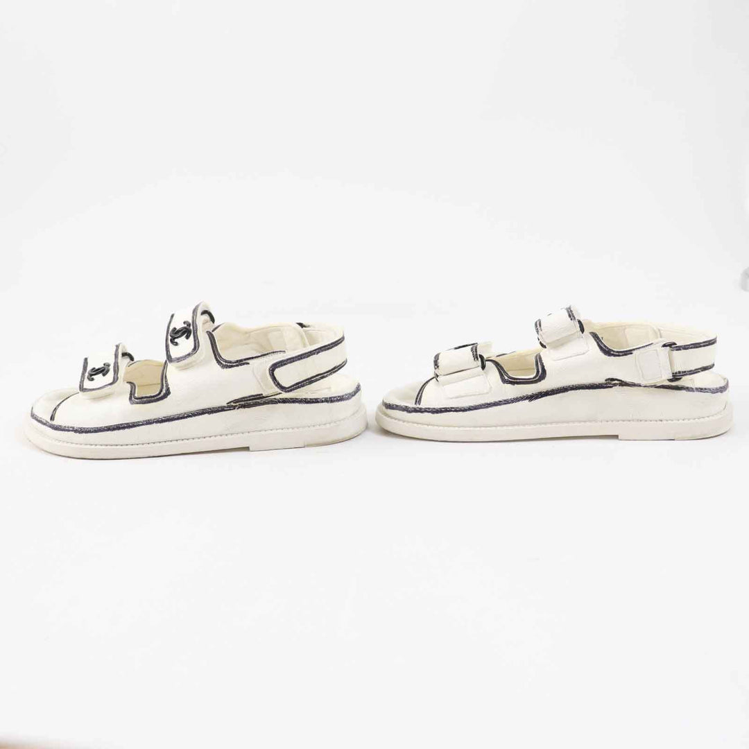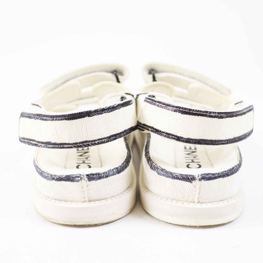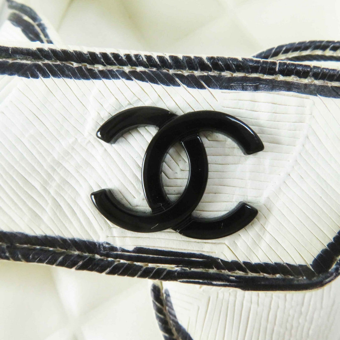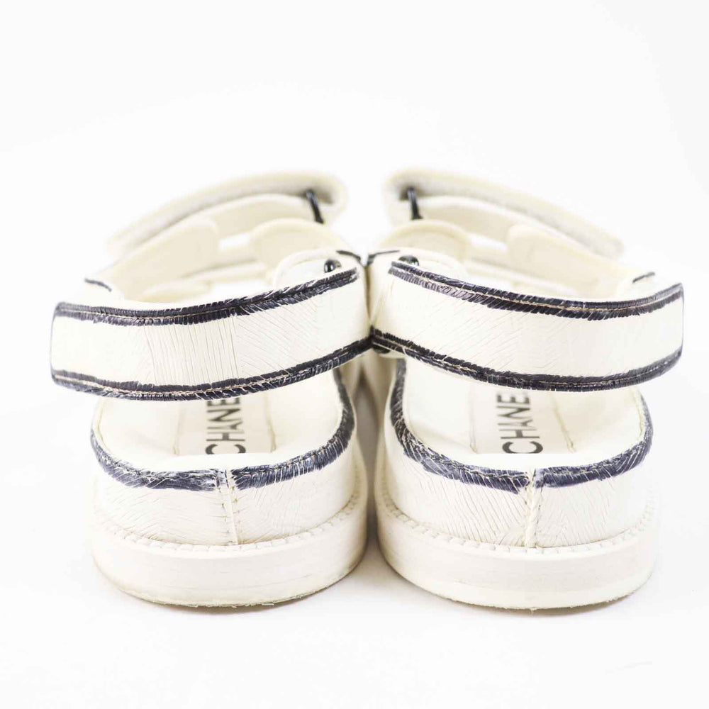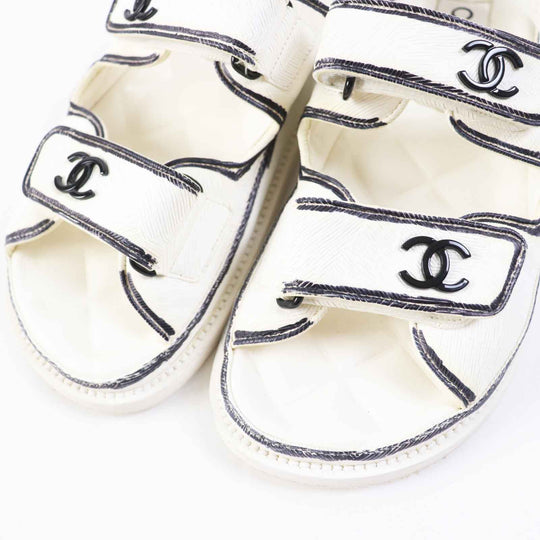 CHANEL Sandals G35927 leather Ivory black COCO Mark Comfort Velcro Women 35 Used Authentic