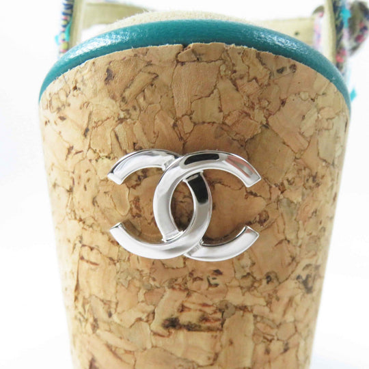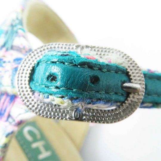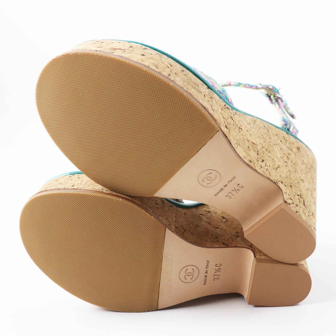 CHANEL Sandals G39812 Tweed, Leather, Cork Multi Wedge sole Women 37 1/2 C Used Authentic