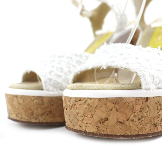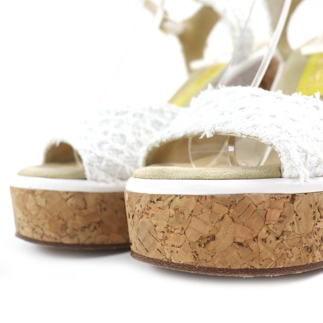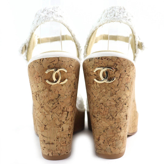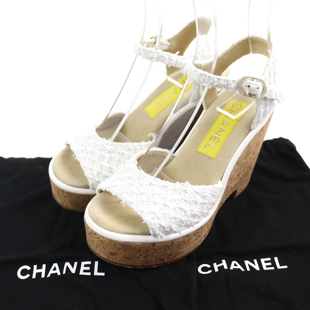 CHANEL Sandals G39812 Main: Tweed, Part: Cork White natural Women 35 Used Authentic