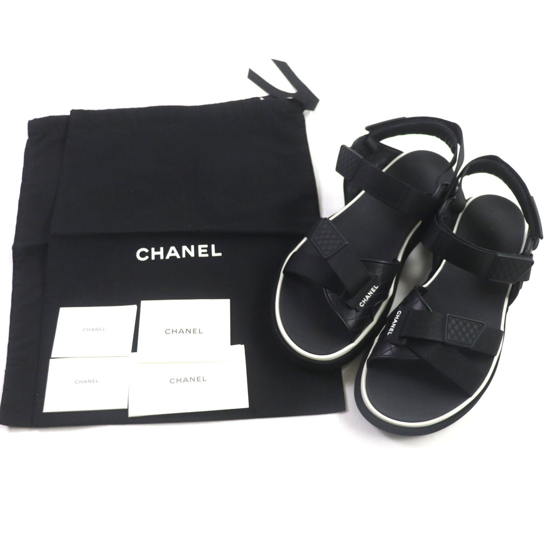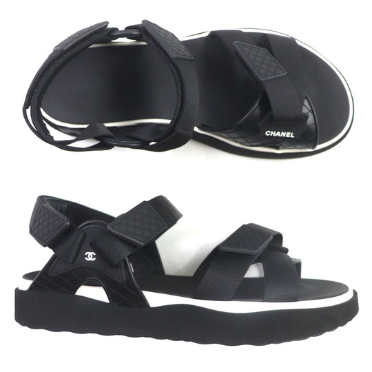 CHANEL Sandals G45084 Main: Leather, Main: Rubber, Main: Nylon black Velcro mens 43 Used Authentic