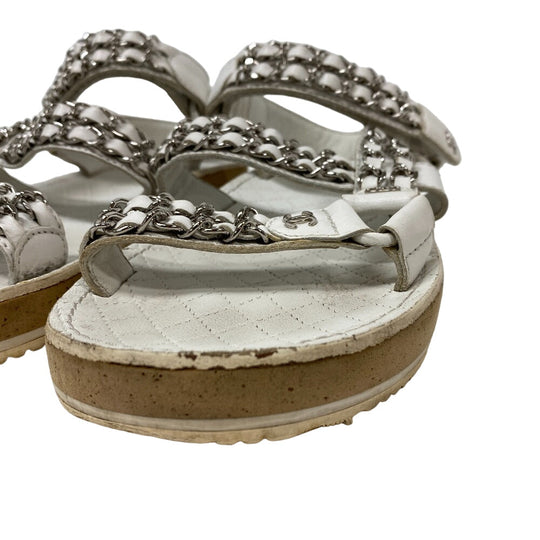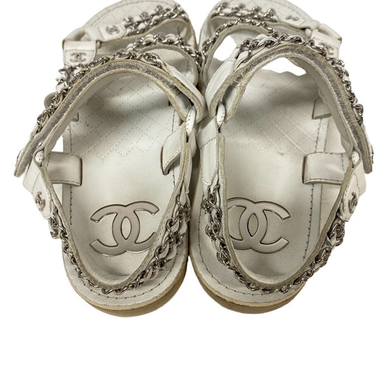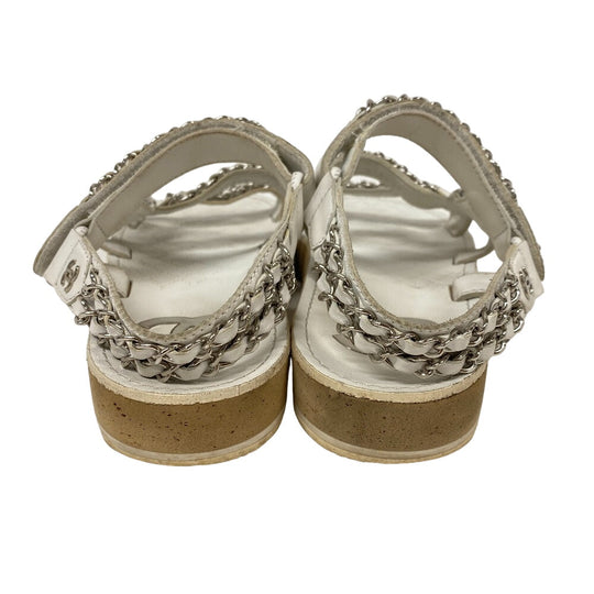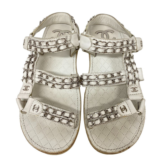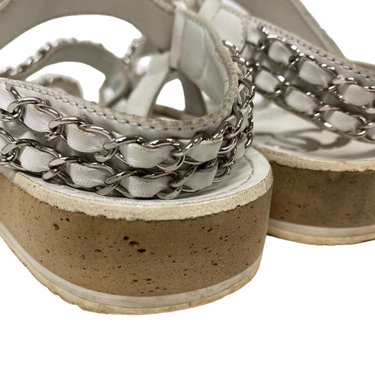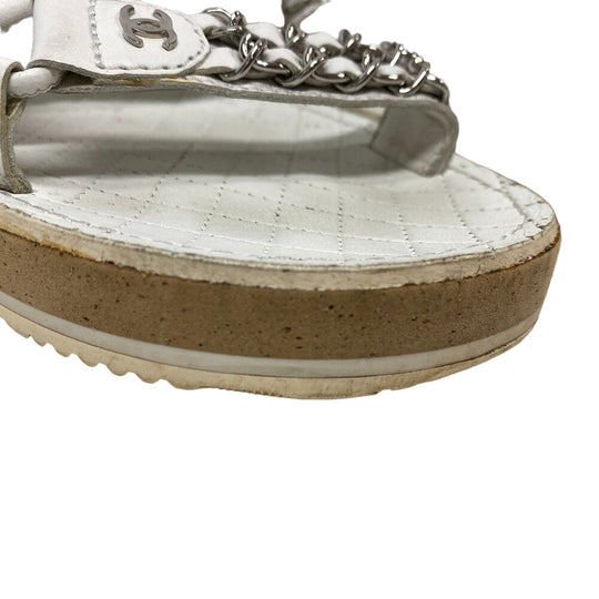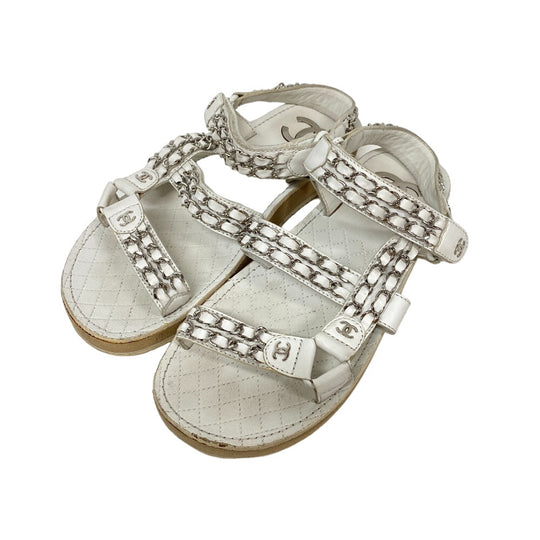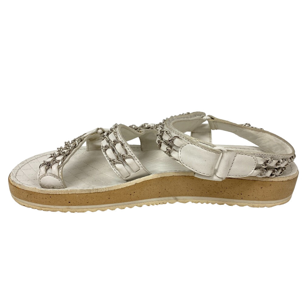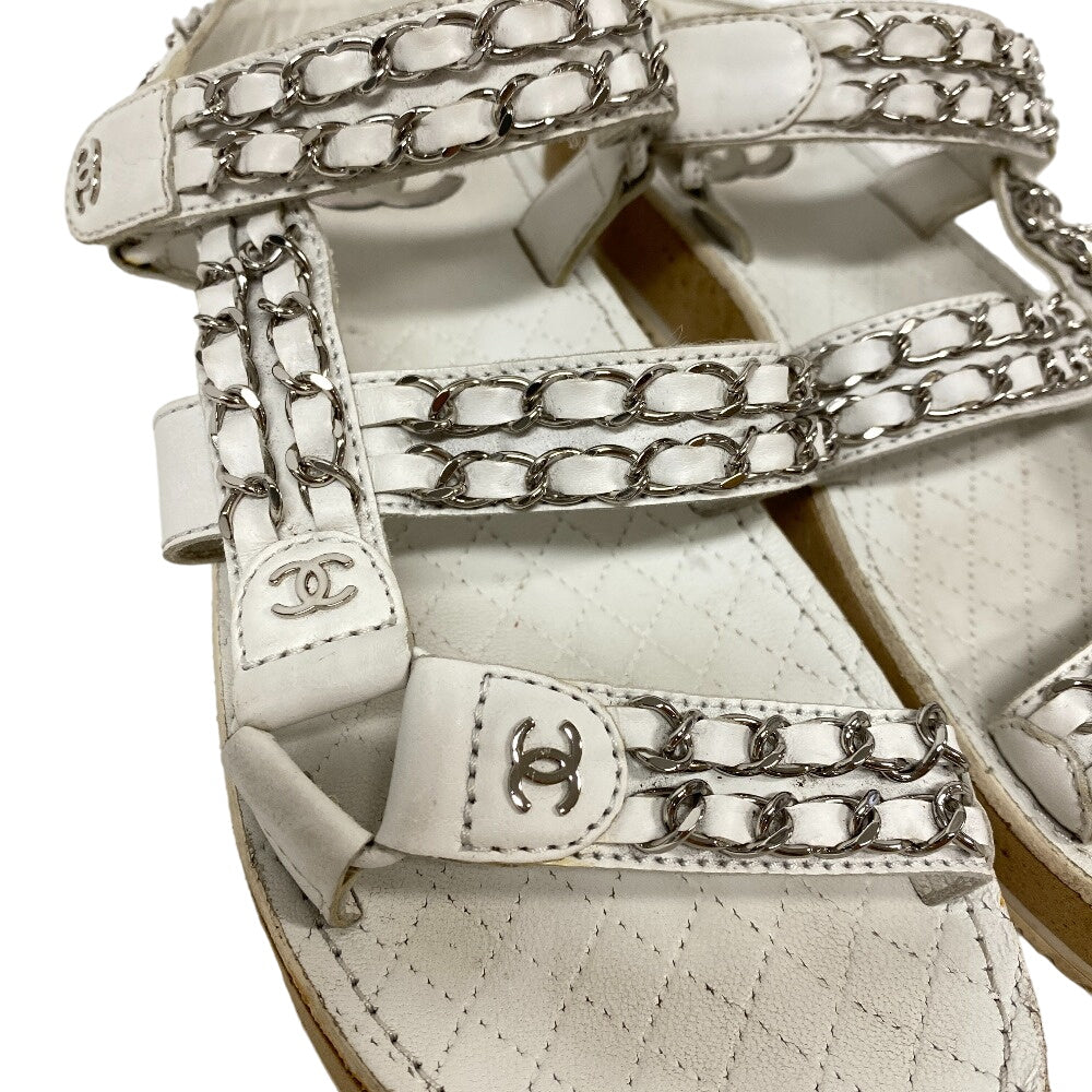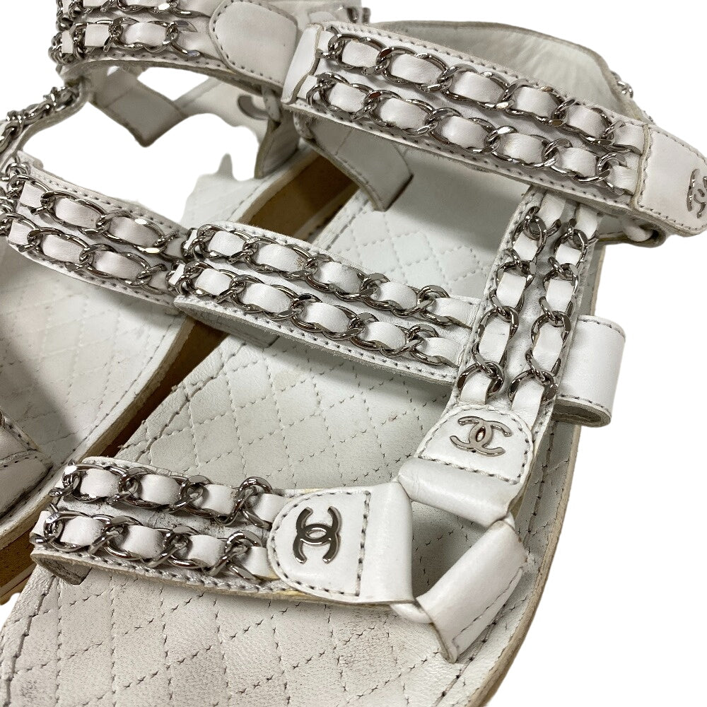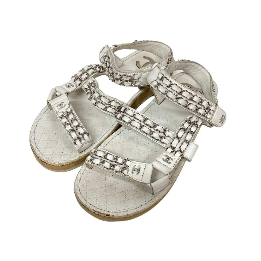 CHANEL Sandals leather white Chain Velcro Strap Matrasse COCO Mark Women Size unknown Used Authentic