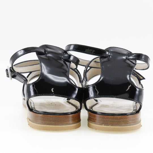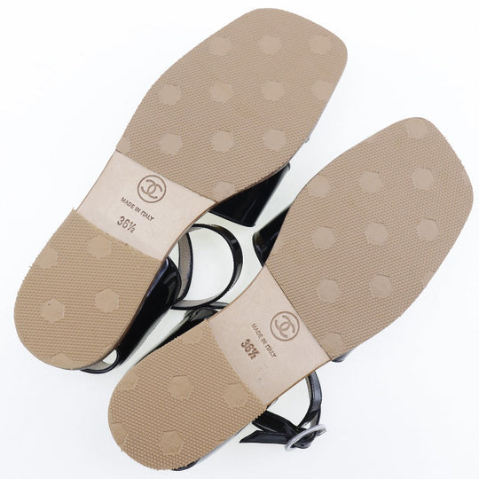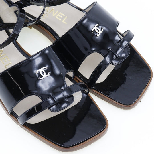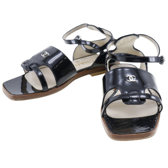 CHANEL Sandals Patent leather black Ankle strap flat COCO Mark Women 36 1/2 Used Authentic