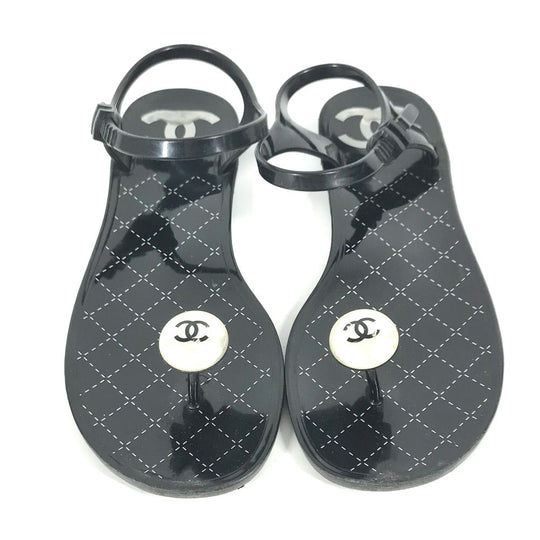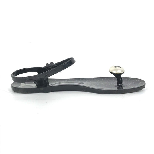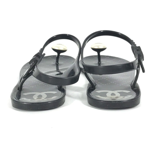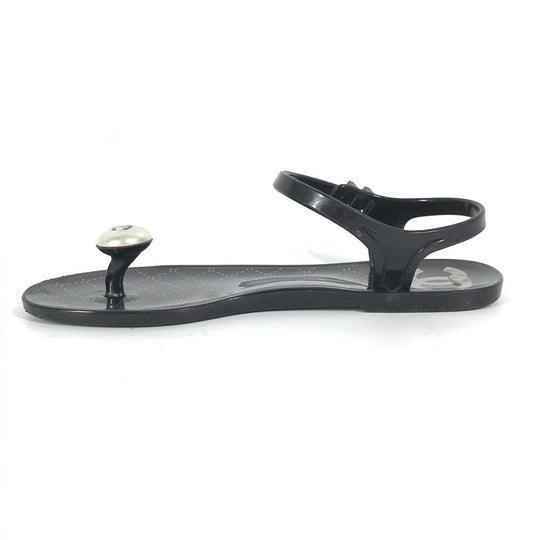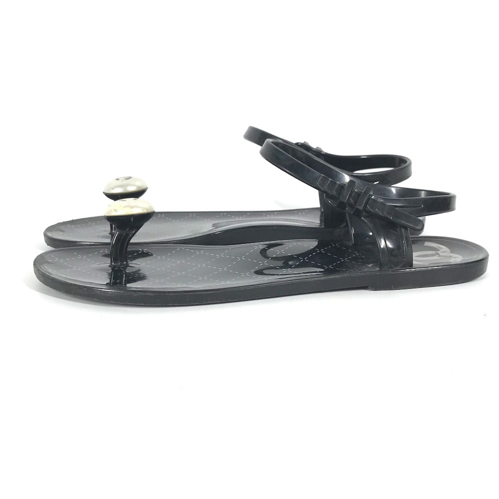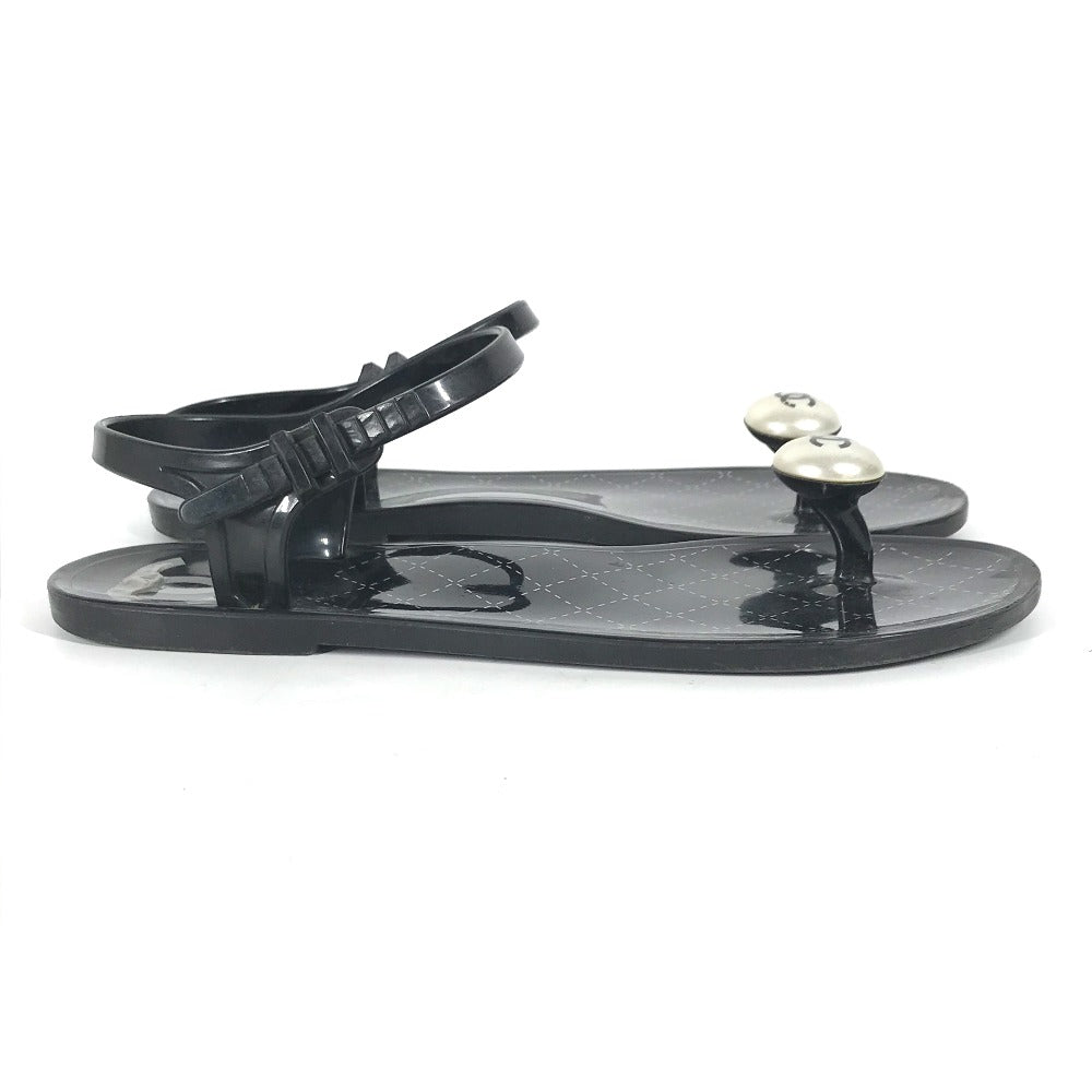 CHANEL Sandals rubber black CC COCO Mark Fake Pearl 37