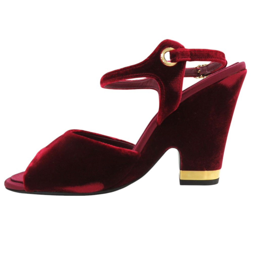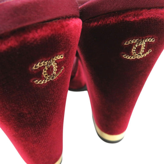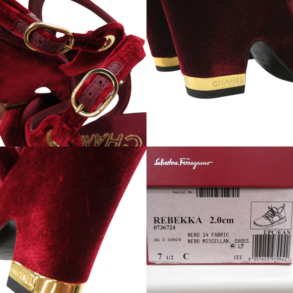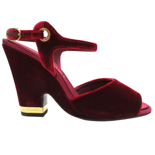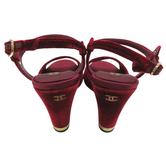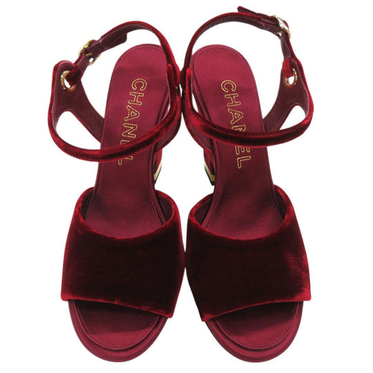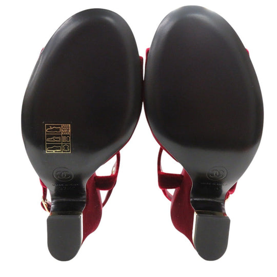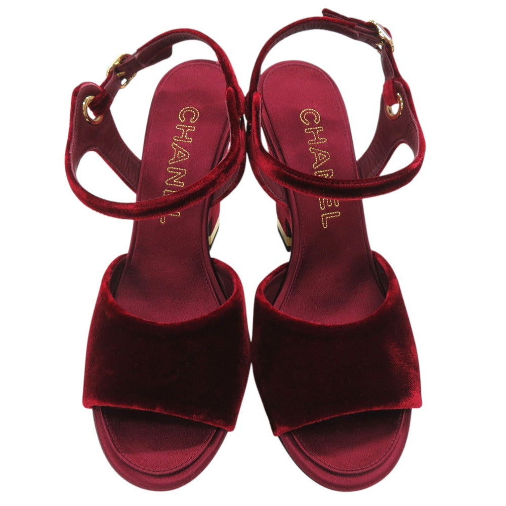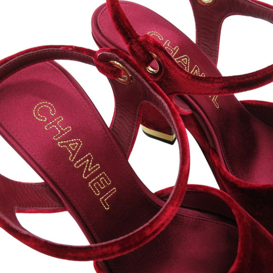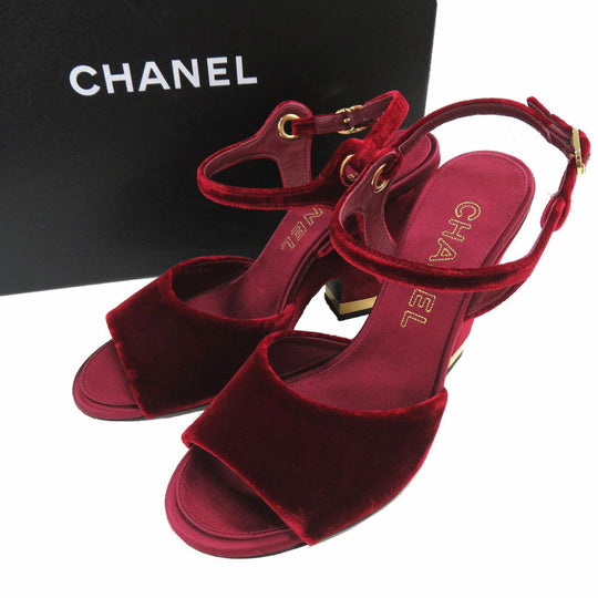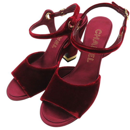 CHANEL Sandals velvet Burgundy Strap chunky heel Women 37 1/2 C Used Authentic
