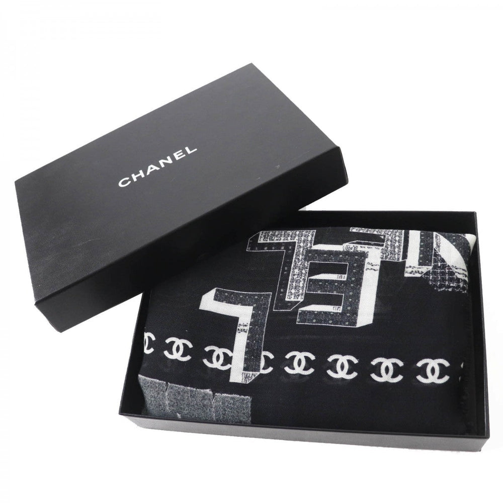 CHANEL scarf 21B Main: 70% wool, Main: 30% cashmere Black White Women Used Authentic