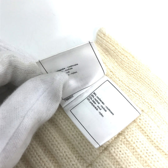CHANEL Scarf Cashmere, Mohair white Ribbon ribbon neck warmer camellia Women Used Authentic