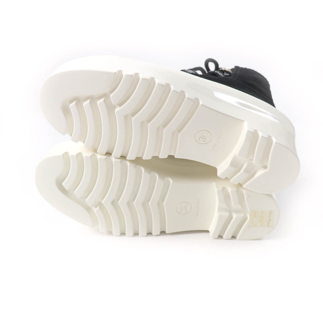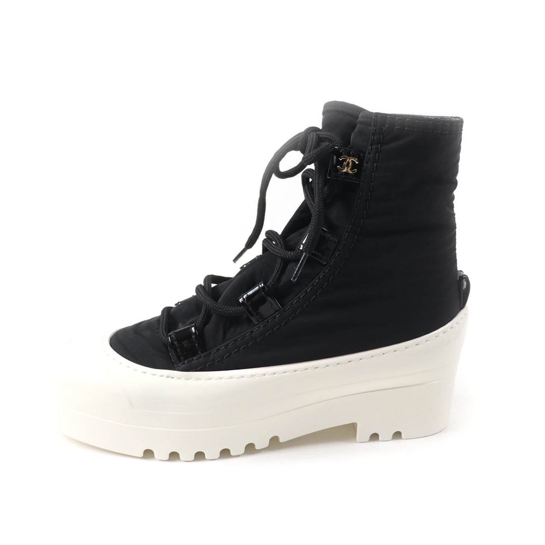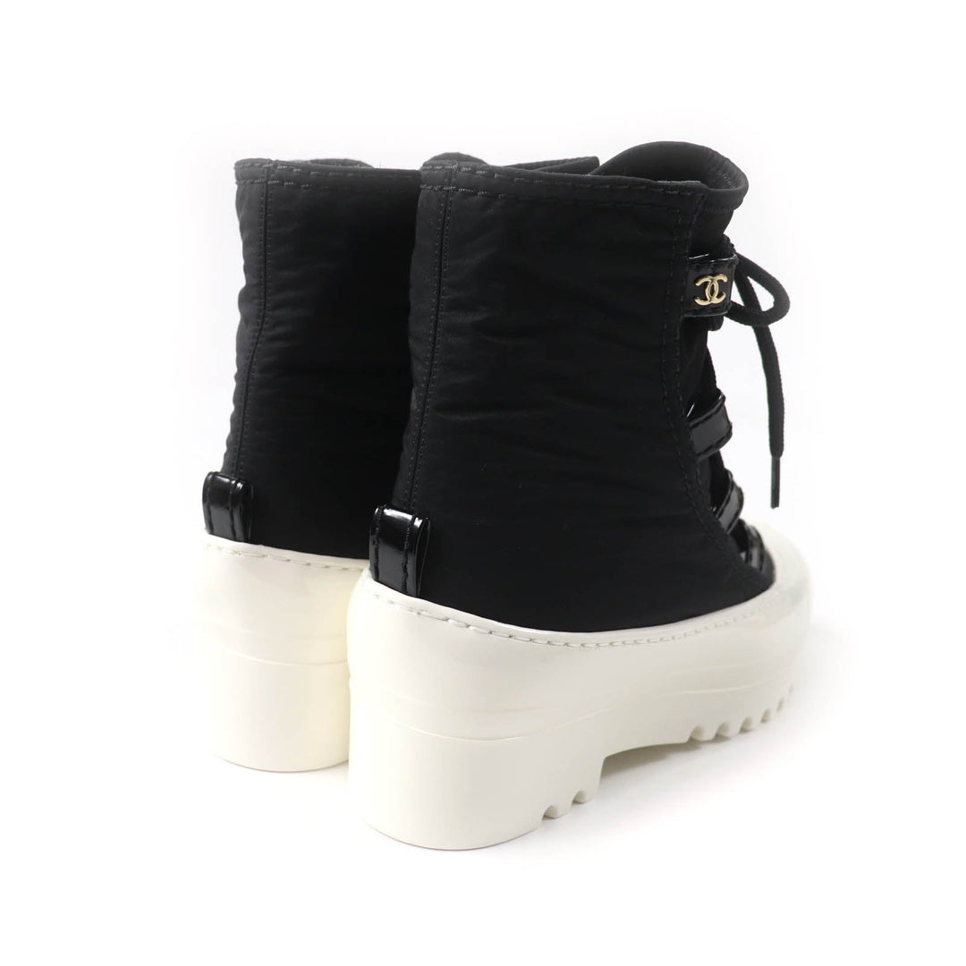 CHANEL short boots G35140 19B Main: Nylon, Main: Patent leather Black White Women 37 Used Authentic