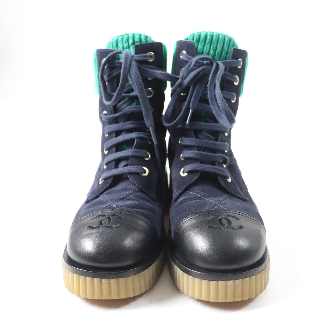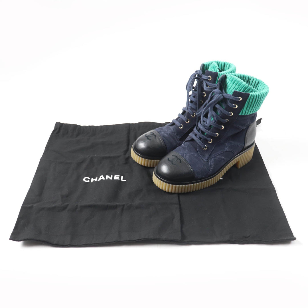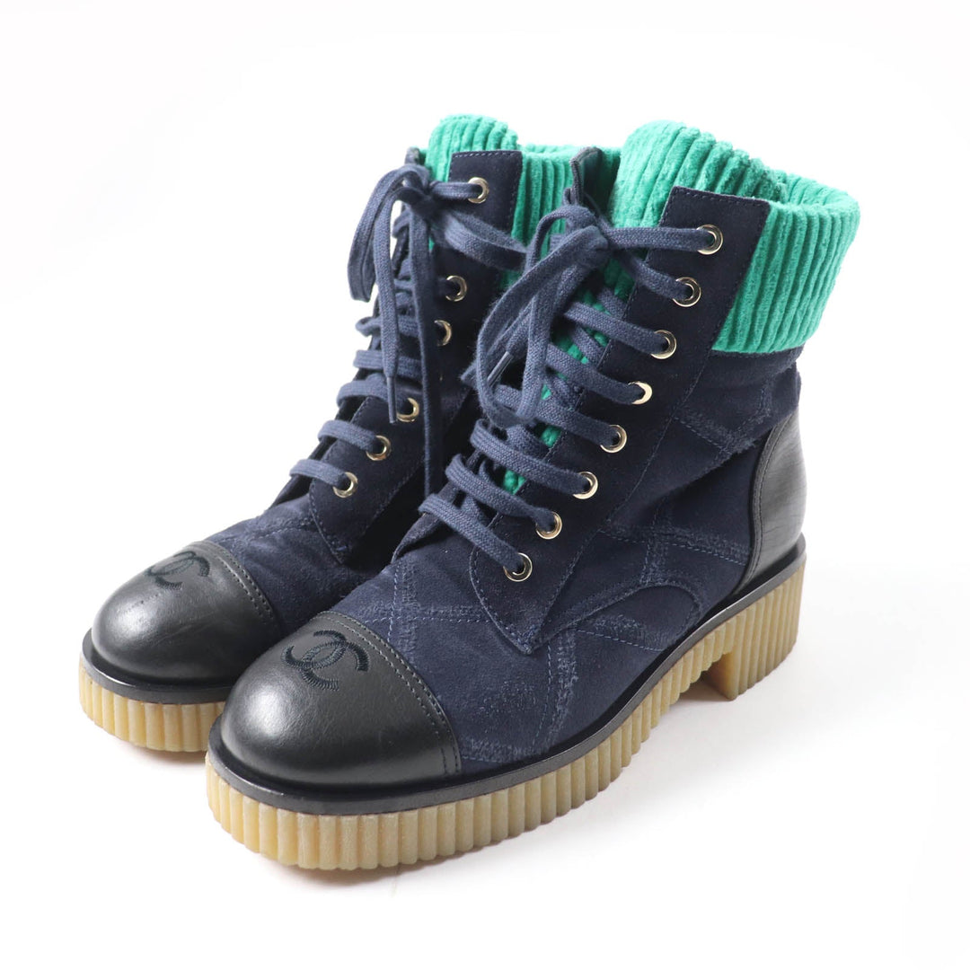 CHANEL short boots G36536 Main: suede leather, part: leather Navy green Women 37 Used Authentic