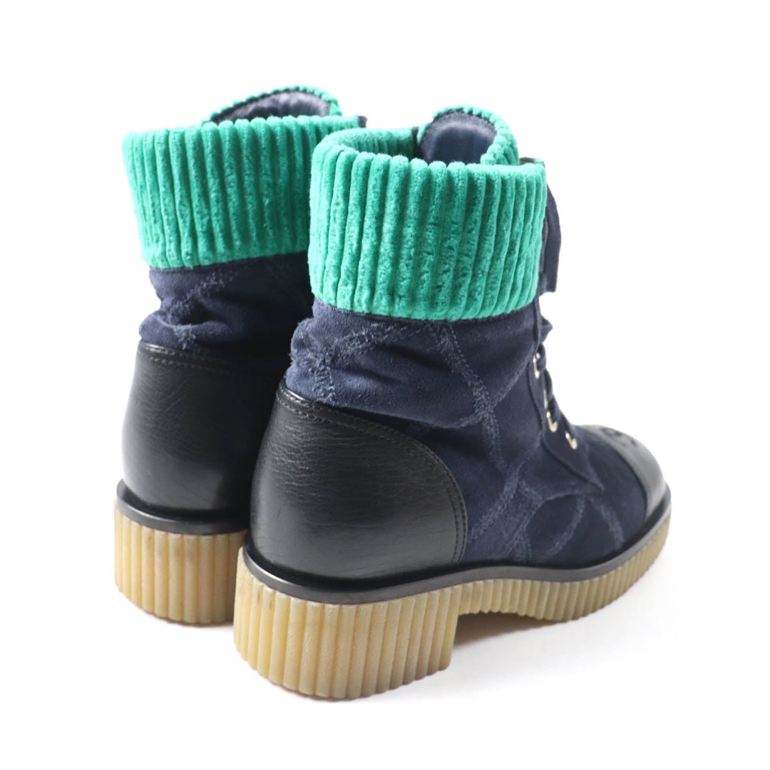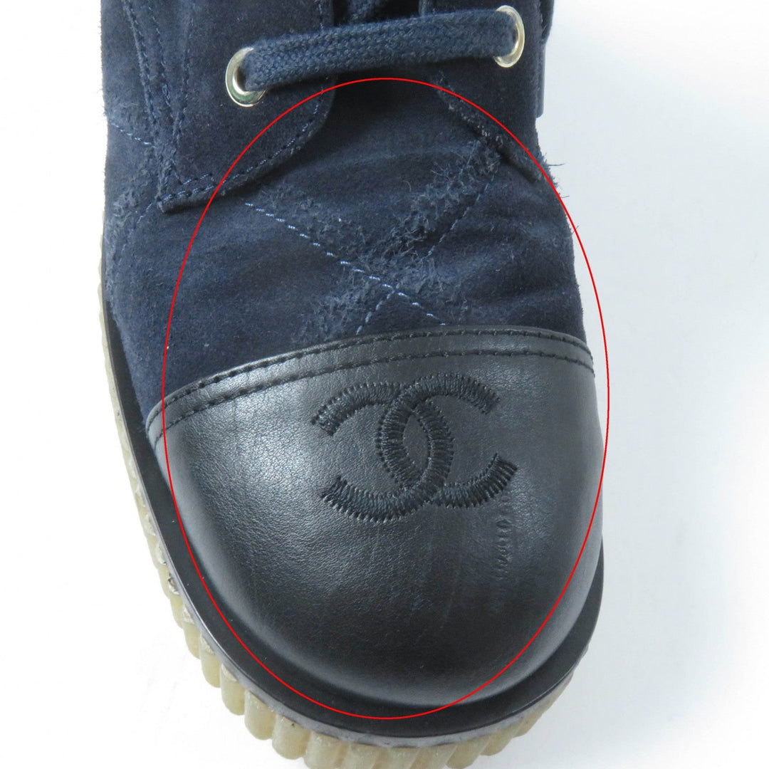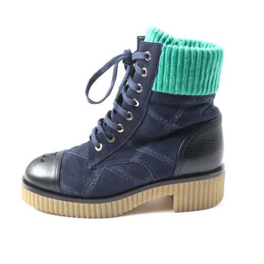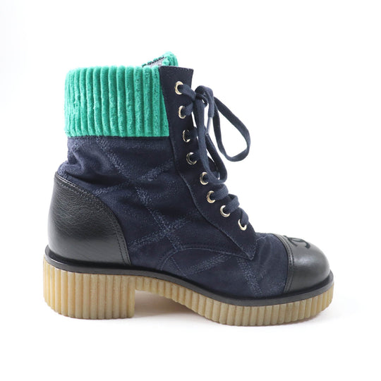 CHANEL short boots G36536 Main: suede leather, part: leather Navy green Women 37 Used Authentic