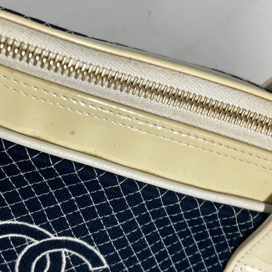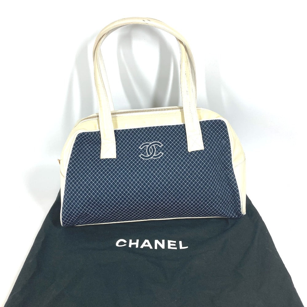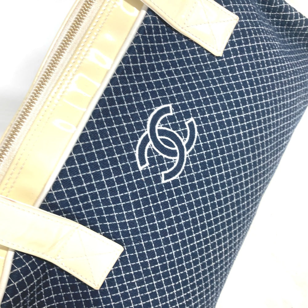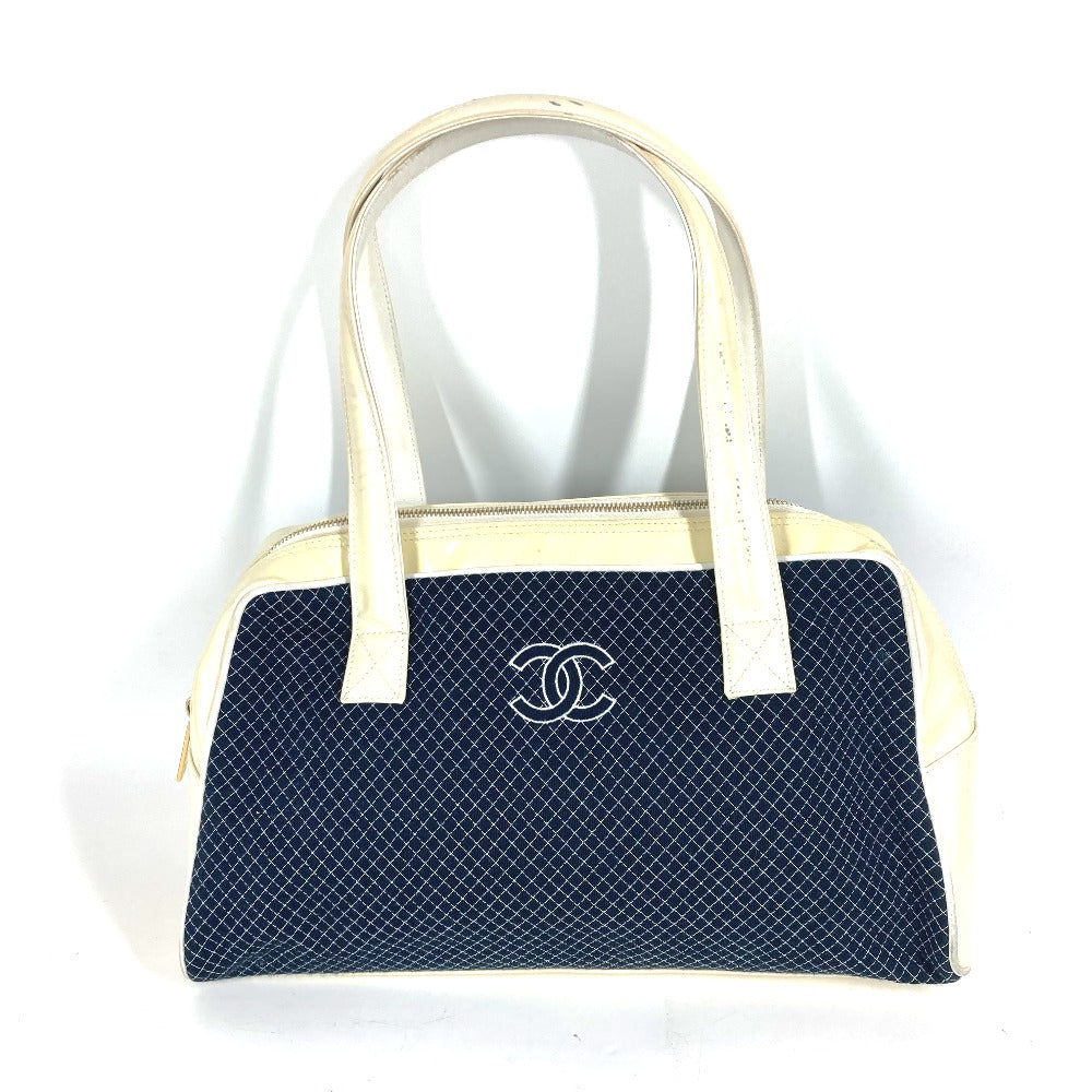 CHANEL Shoulder Bag Canvas, enamel Navy Mini Boston Duffel bag CC COCO Mark Quilting Matelasse