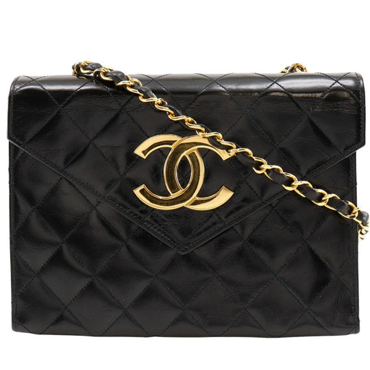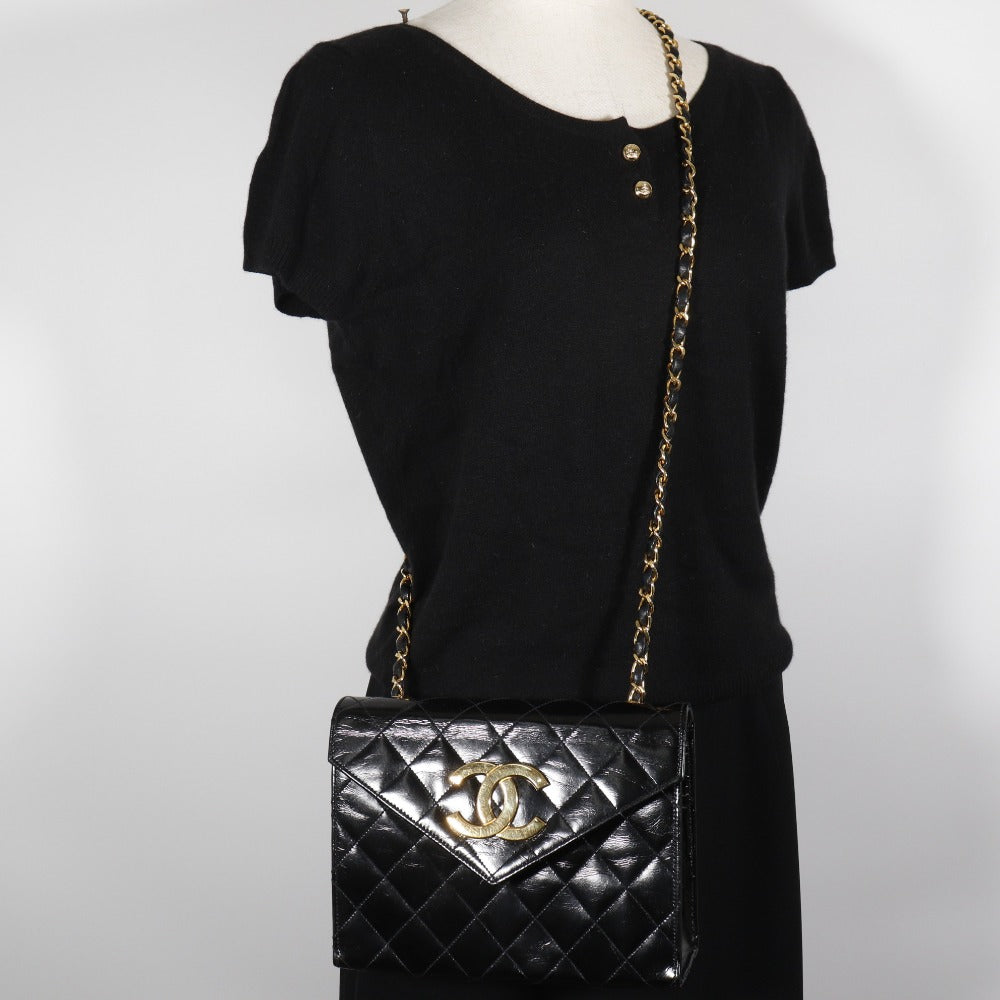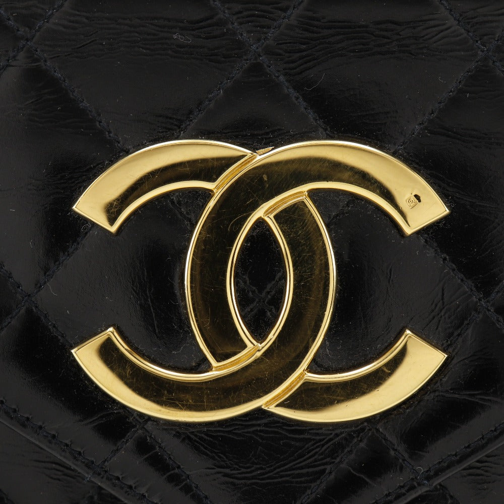 CHANEL Shoulder Bag enamel black vintage Decacoco Matelasse ChainShoulder Women Used Authentic