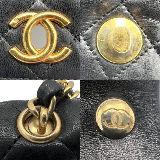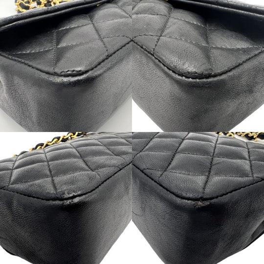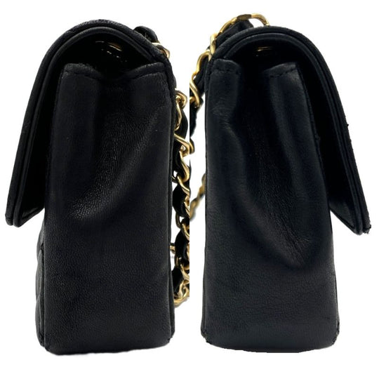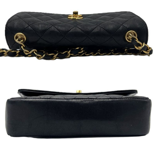 CHANEL Shoulder Bag lambskin black Chain Gold Metal Flap Turnlock Mini Matrasse Women Used Authentic