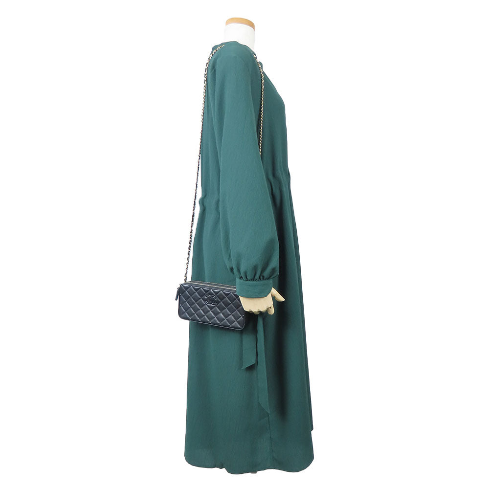 CHANEL Shoulder Bag lambskin black Chain wallet Women Used Authentic