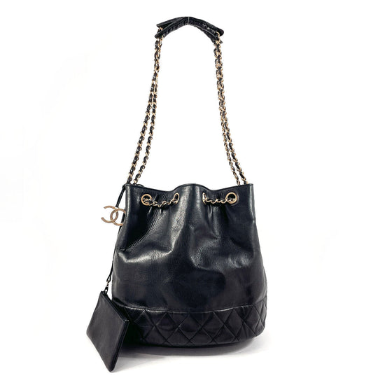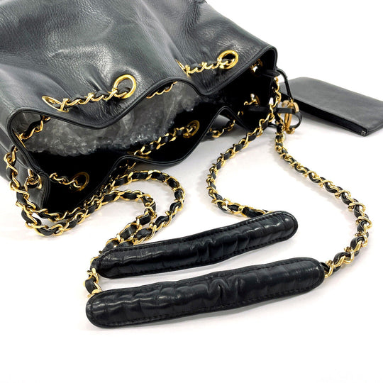 CHANEL Shoulder Bag lambskin black COCO Mark Drawstring Chain Shoulder