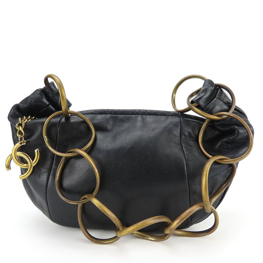 CHANEL Shoulder Bag lambskin black Croissant Women Used Authentic