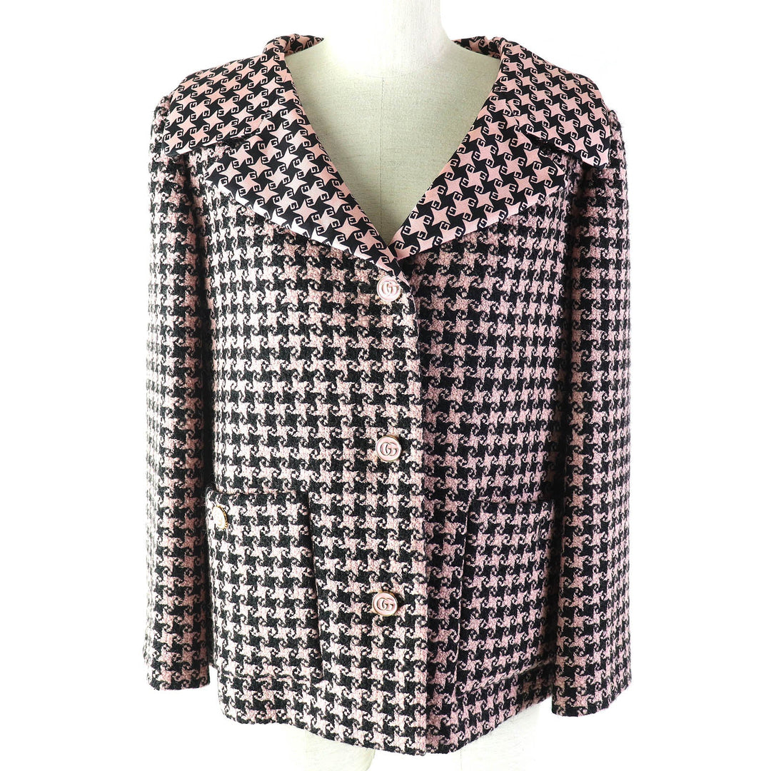 GUCCI Jacket 674323 ZAHXM Outer: 90% wool, Outer: 10% nylon, Lining: 100% silk Pink black Women 36 Used Authentic