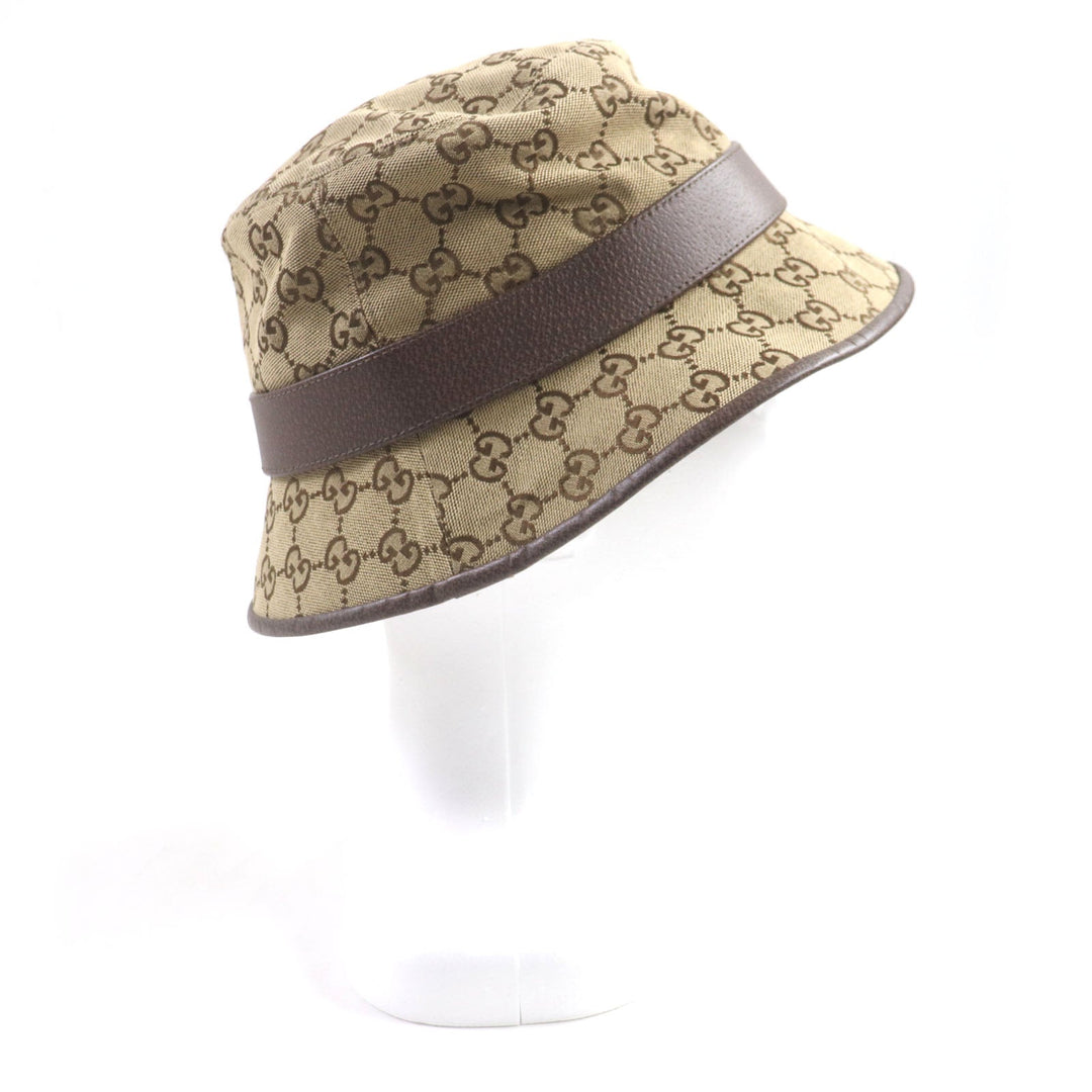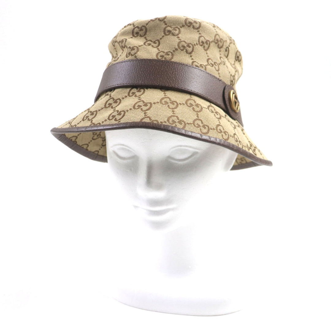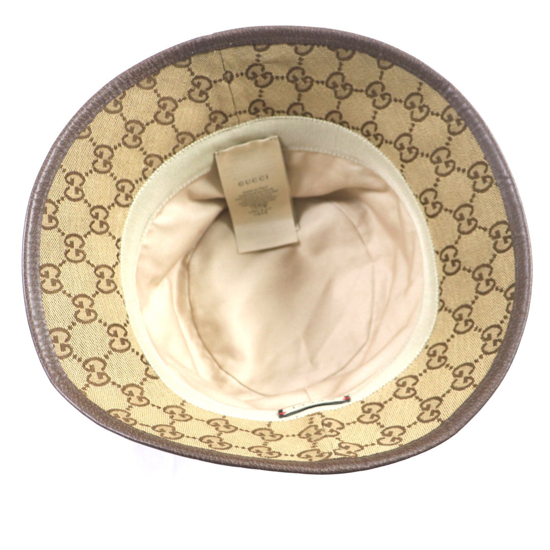 GUCCI hat 576587 Outer material: 71% cotton, Outer material: 29% polyester, Lining: 100% cotton, Leather part: Cowhide light brown GG Canvas Fedora Hat mens M Used Authentic