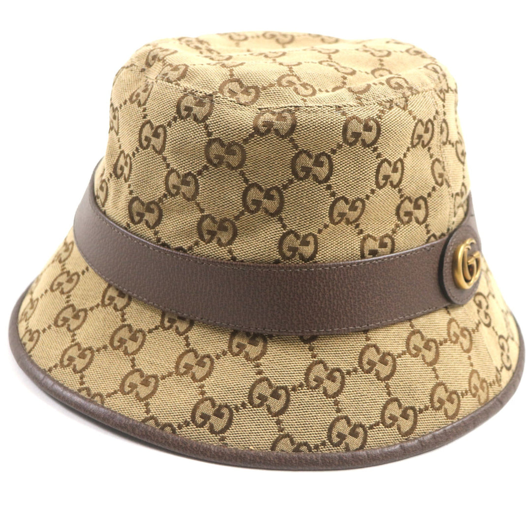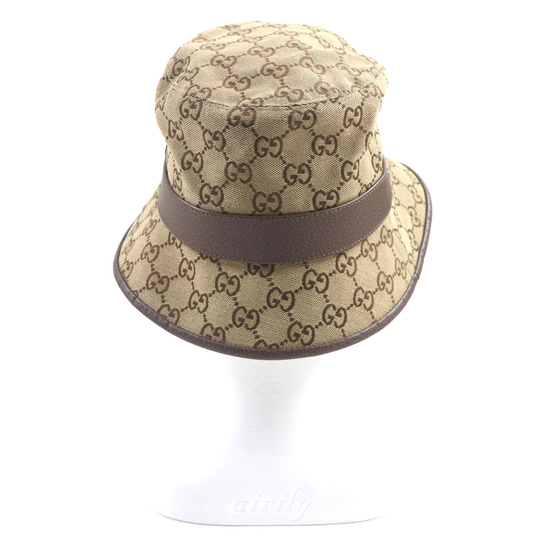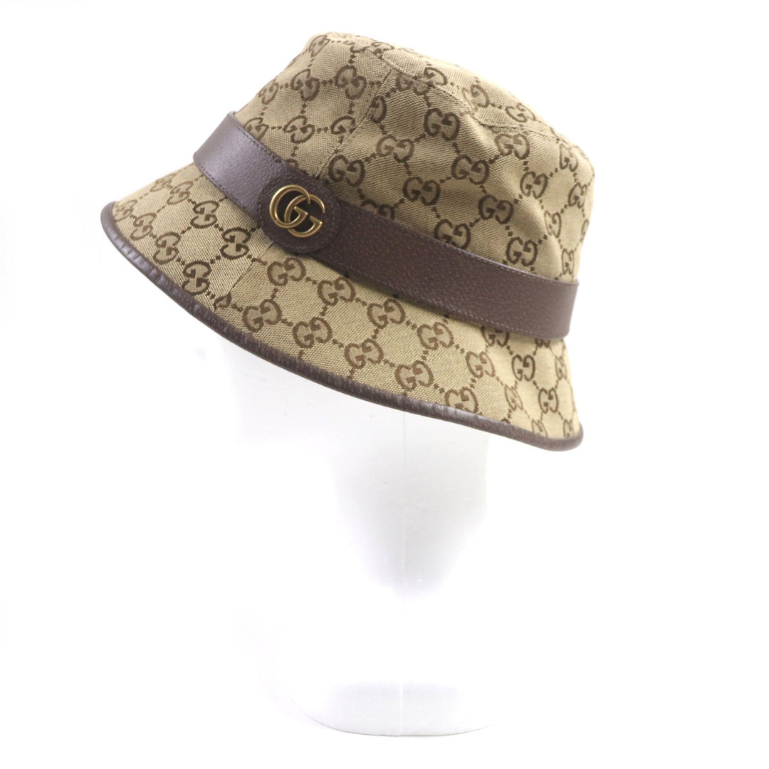 GUCCI hat 576587 Outer material: 71% cotton, Outer material: 29% polyester, Lining: 100% cotton, Leather part: Cowhide light brown GG Canvas Fedora Hat mens M Used Authentic
