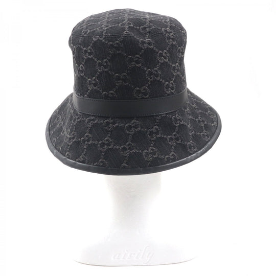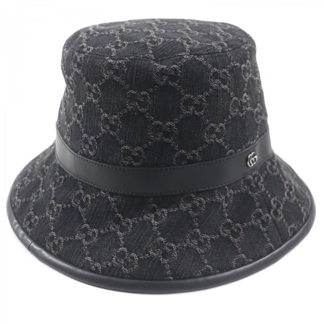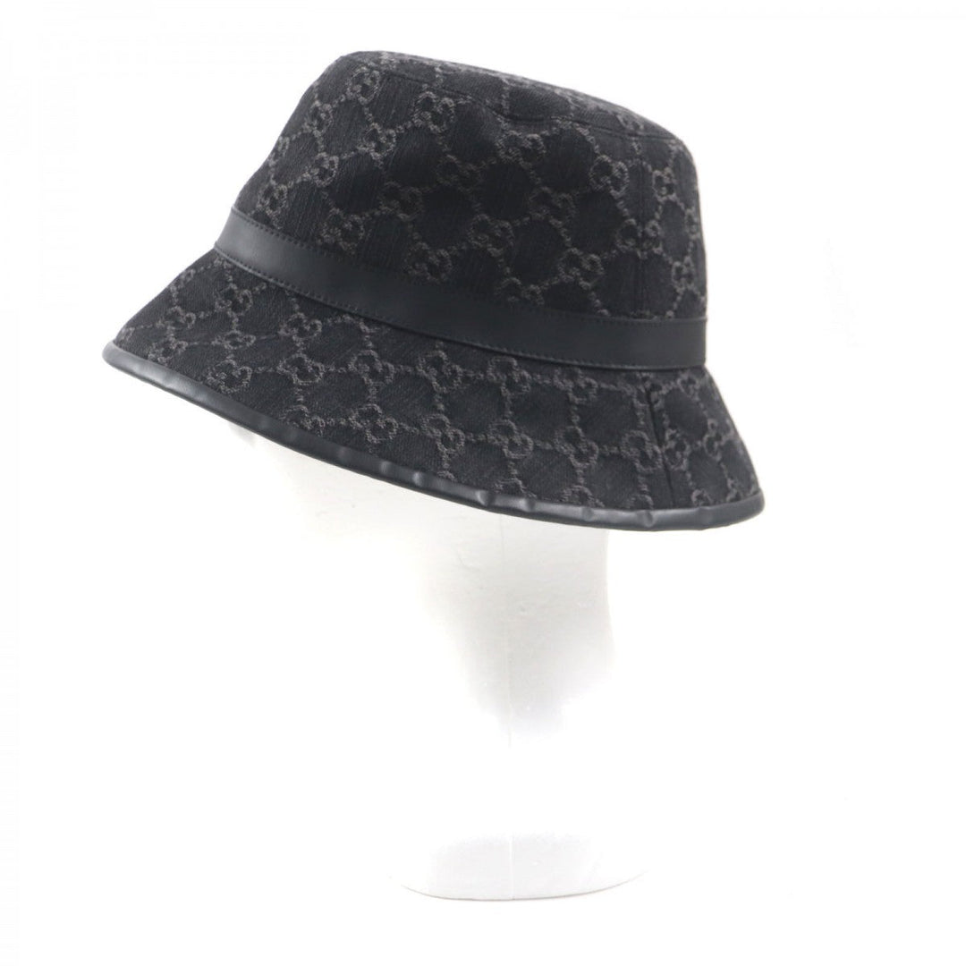GUCCI hat 768647 Outer: 100% cotton, Lining: 55% cotton, Lining: 45% rayon, Leather part: cowhide black mens L Used Authentic