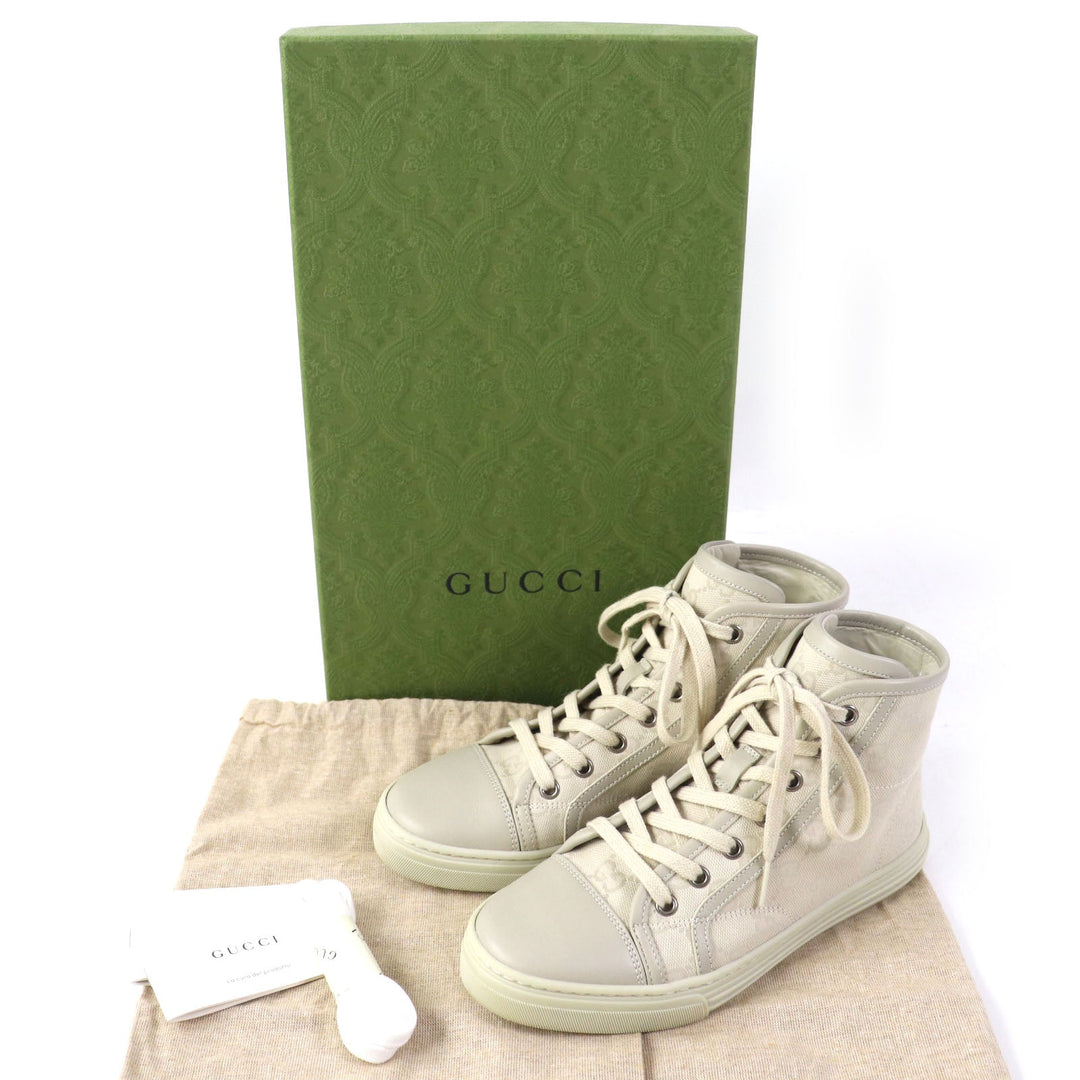 GUCCI High cut sneakers 426186 Main: Canvas, Part: Leather light beige Women 34.5 Used Authentic
