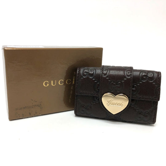 GUCCI Key case Key holder  203551 leather Brown GG Heart plate Women Used Authentic