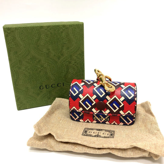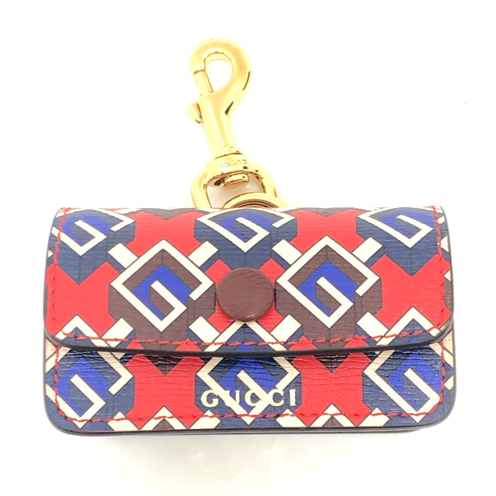GUCCI key ring 692957 leather Red Pets GG Etiquette Bag Holder unisex(Unisex) Used Authentic