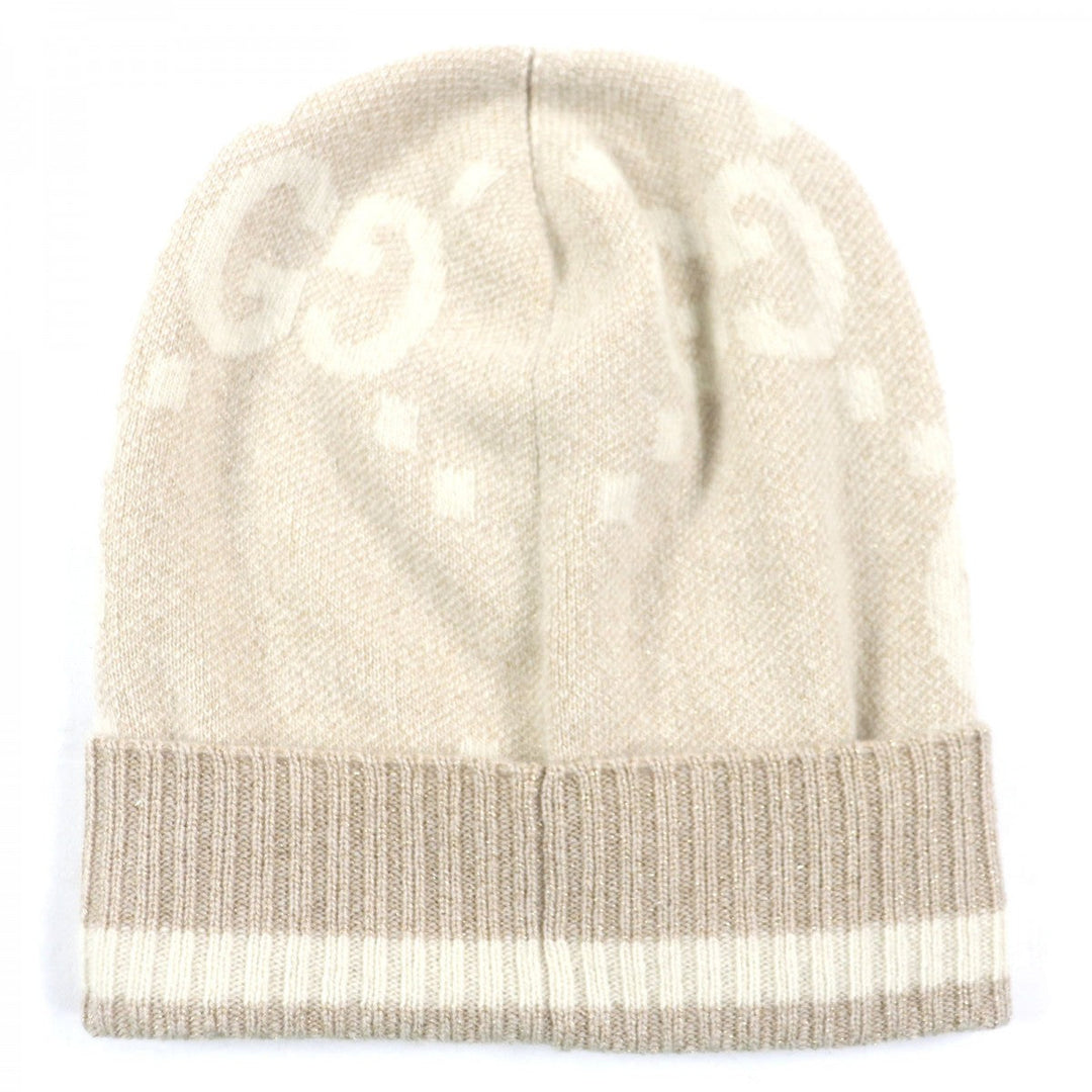 GUCCI Knit cap 765053 Main: 84% cashmere, Main: 9% rayon, Main: 4% polyester, Main: 3% polyester camel white GG Cashmere Jacquard Cap mens M Used Authentic