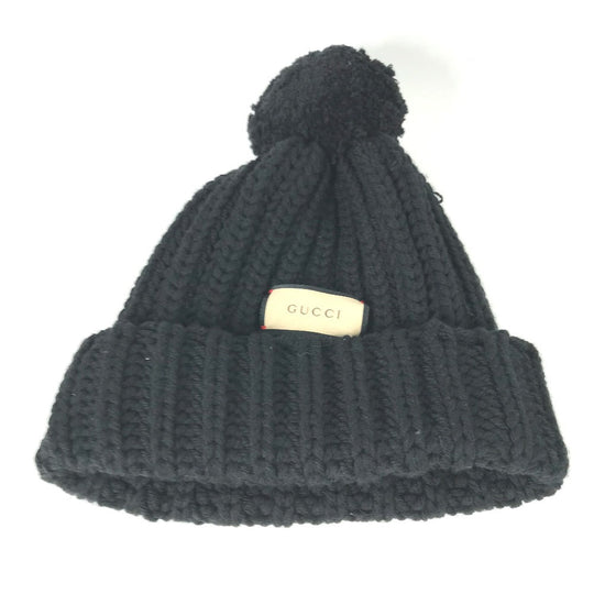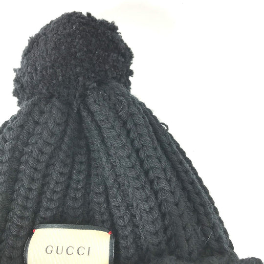 GUCCI Knit hat 652656 polyester black With pompoms logo Women 58 Used Authentic