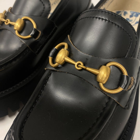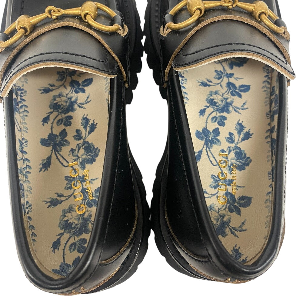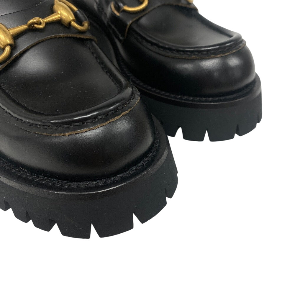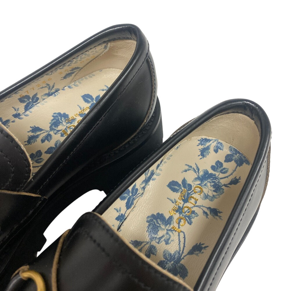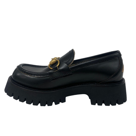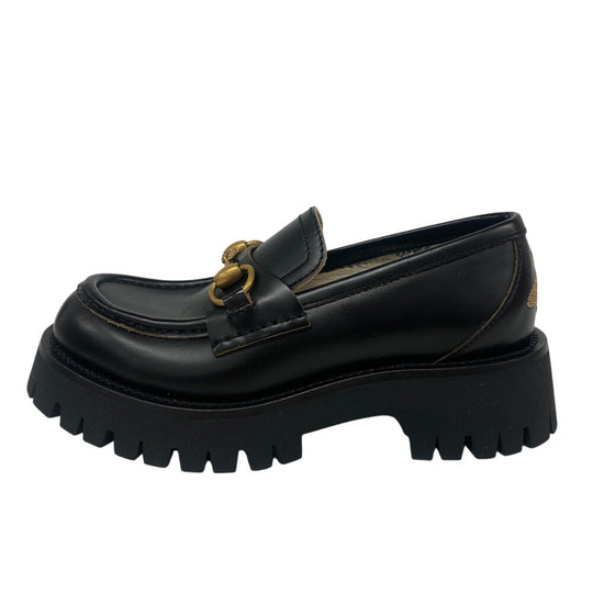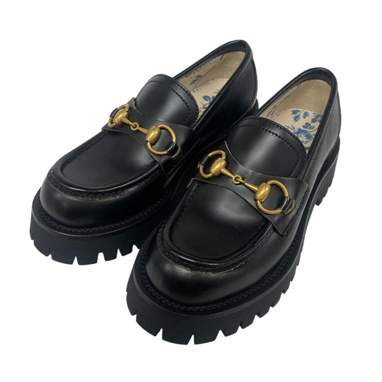 GUCCI loafers 577236 DS800 leather black Horsebit Women 34.5 Used Authentic