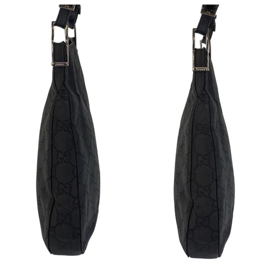 GUCCI Shoulder Bag 13166 GG canvas Black SilverMetal Shoulder Bag Women Used Authentic
