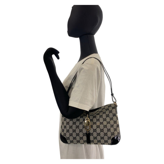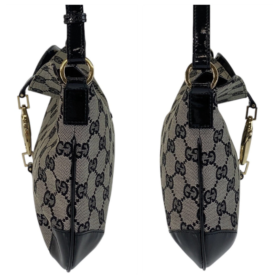 GUCCI Shoulder Bag 14147 GG canvas, enamel Black GoldMetal Women Used Authentic