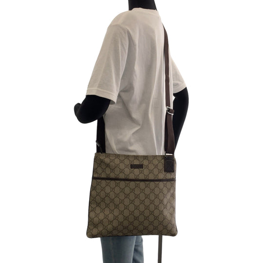 GUCCI Shoulder Bag 141626 GG Supreme Canvas Beige Brown SilverMetal Crossbody Shoulder Bag Messenger Bag mens Used Authentic