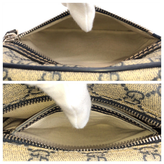 GUCCI Shoulder Bag 233268 GG Supreme canvas, leather Gray Navy SilverMetal Shoulder Bag pochette Women Used Authentic