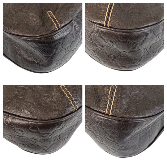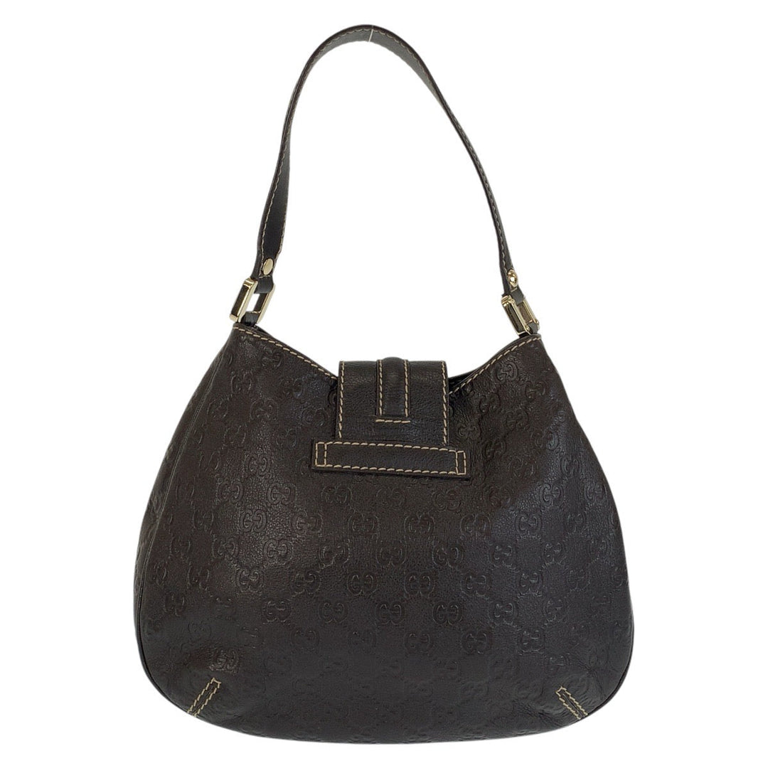 GUCCI Shoulder Bag 233608 leather Brown Gold Metal Guccisima Women Used Authentic