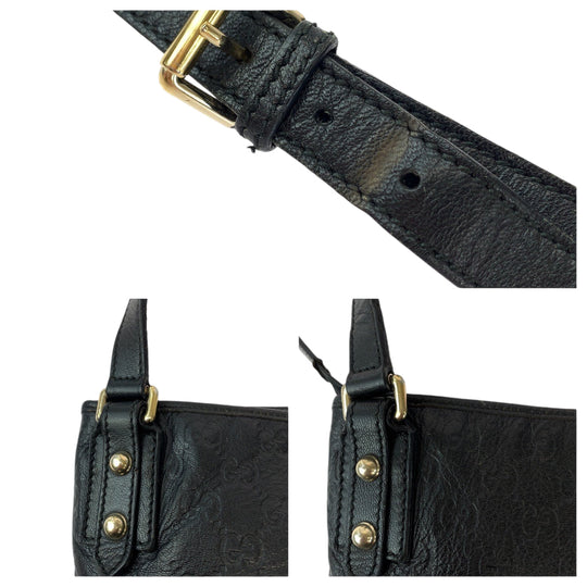 GUCCI Shoulder Bag 239347 leather Black SilverMetal Shoulder Bag pochette Guccisima mens Used Authentic