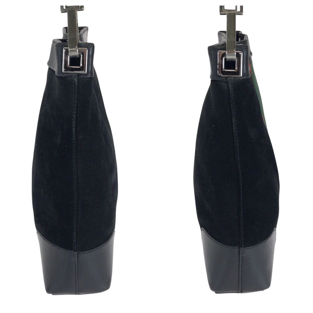 GUCCI Shoulder Bag 33900 Suede, Leather Black Green Red SilverMetal One Shoulder Bag Sherry line Women Used Authentic