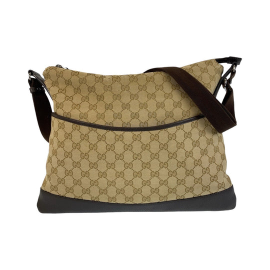 GUCCI Shoulder Bag 374411 GG canvas, leather Beige Brown SilverMetal Crossbody Shoulder Bag Messenger Bag Women Used Authentic