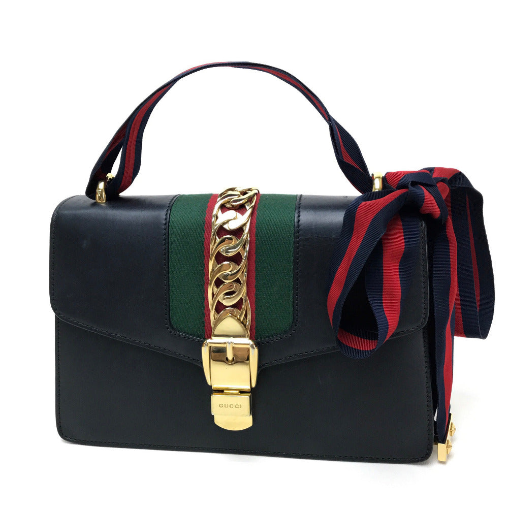 GUCCI Shoulder Bag 421882 leather black Sherry line Silvi Small Ribbon Women Used Authentic