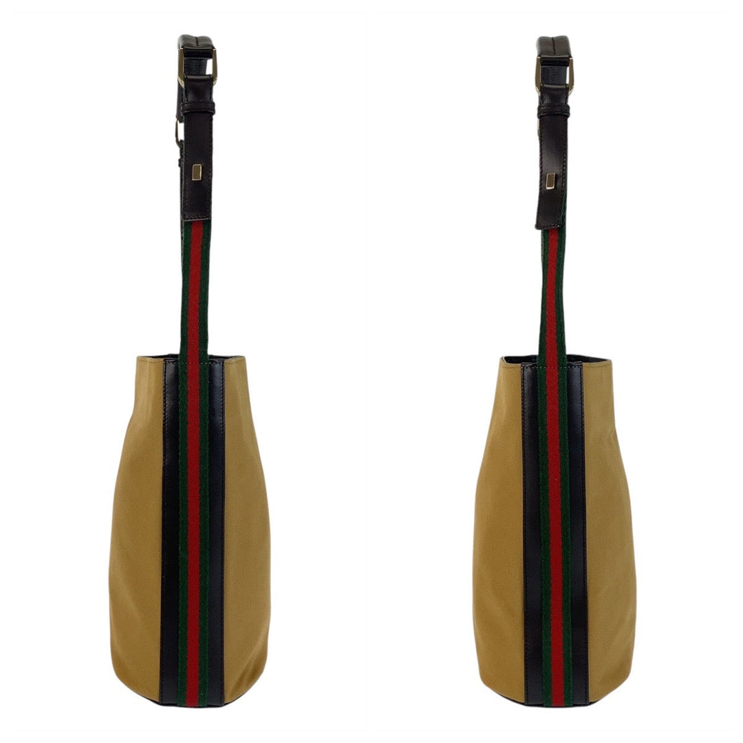 GUCCI Shoulder Bag 4286 Canvas, Leather Camel Black Gold Metal Sherry line Women Used Authentic