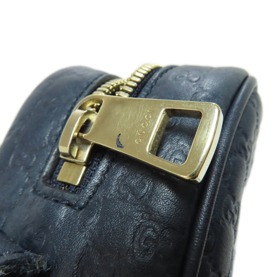 GUCCI Shoulder Bag 449413 leather Navy GG Signature Microsima Outlet Women Used Authentic